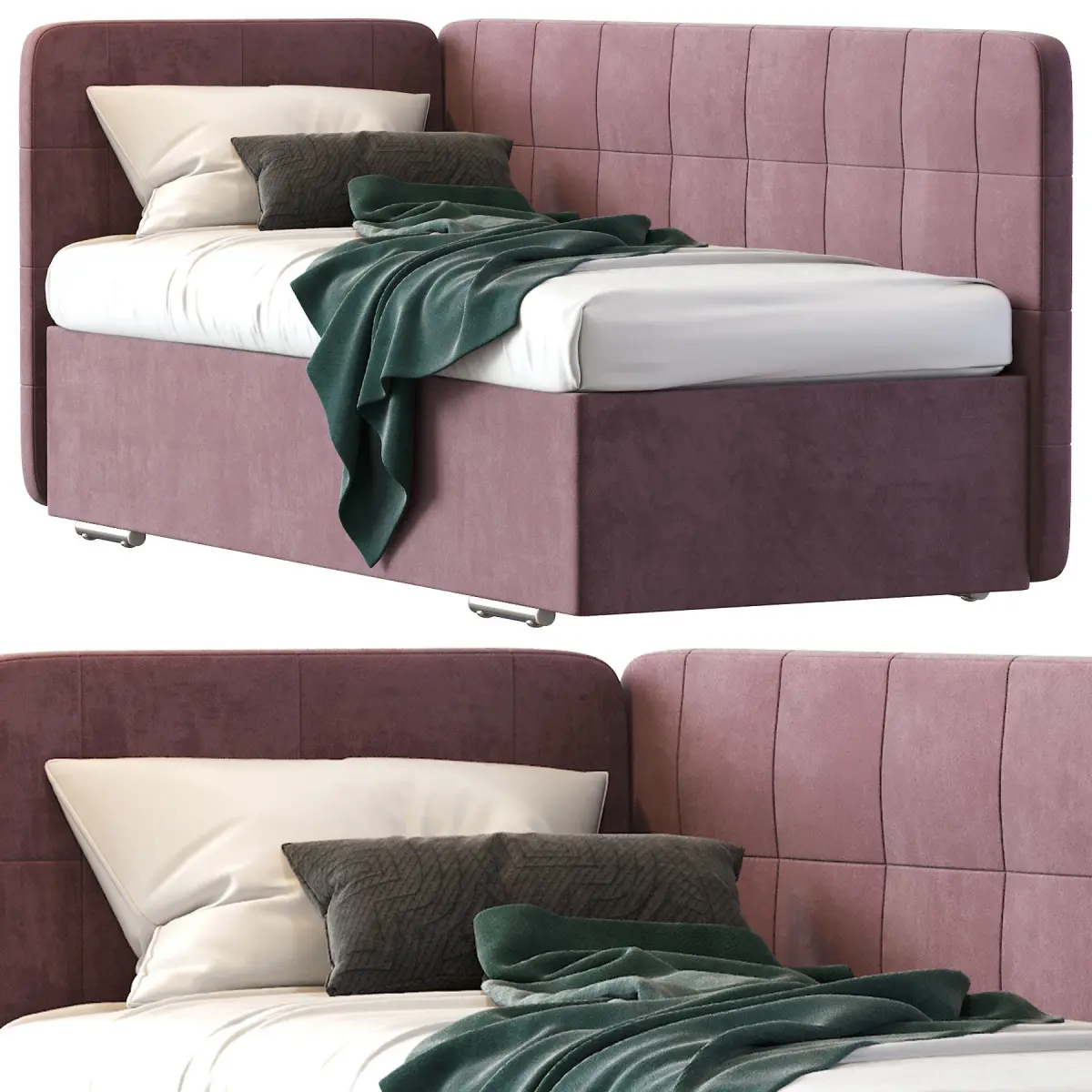 Soft, gentle, feminine - this is how you can describe the Camilla bed, which will be a real find for those who choose a baby bed for your princess. The bed has an angular shape: 2 soft headboards with stylish braces perfectly protect the child from cold walls, which is important given the peculiarities of our climate. If you wish, you can decorate the bed with rhinestones, pearls or buttons to your taste, so that it becomes a real decoration of the children's bedroom.The corners of the bed are soft, which means that even during active games the child will not accidentally hit. You can choose the option of upholstery of the backs at your discretion: eco-leather, fabric, velor - you will definitely find the one that will emphasize the interior of the room. For your convenience, the corner of the bed can be located both on the left and on the right side - depending on the features of your layout.