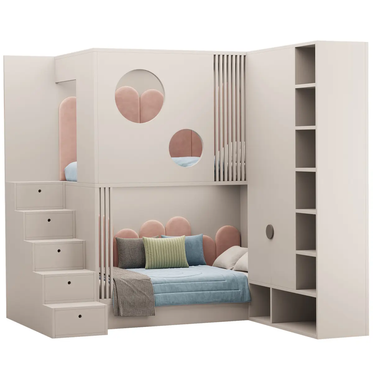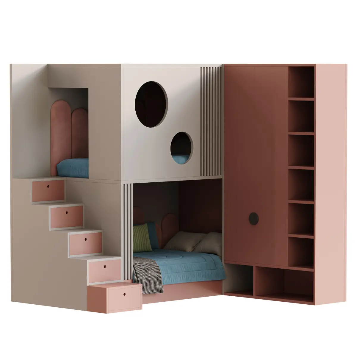 Tags: childrens bunk bed, cubic bunk bed model, 3D kids room furniture, high ceiling kids bed, Corona 3D model, FBX bunk set, OBJ children furniture, square bunk layout, luxury kids interior, twin bed levels, safe kids bunk bed, multilevel play bed, bunk bed with stairs, large children's bed model, room-saving furniture, kids bedroom visualization, realistic bed design, modern playroom model, CoronaLegacyMtl bunk, architectural children room asset