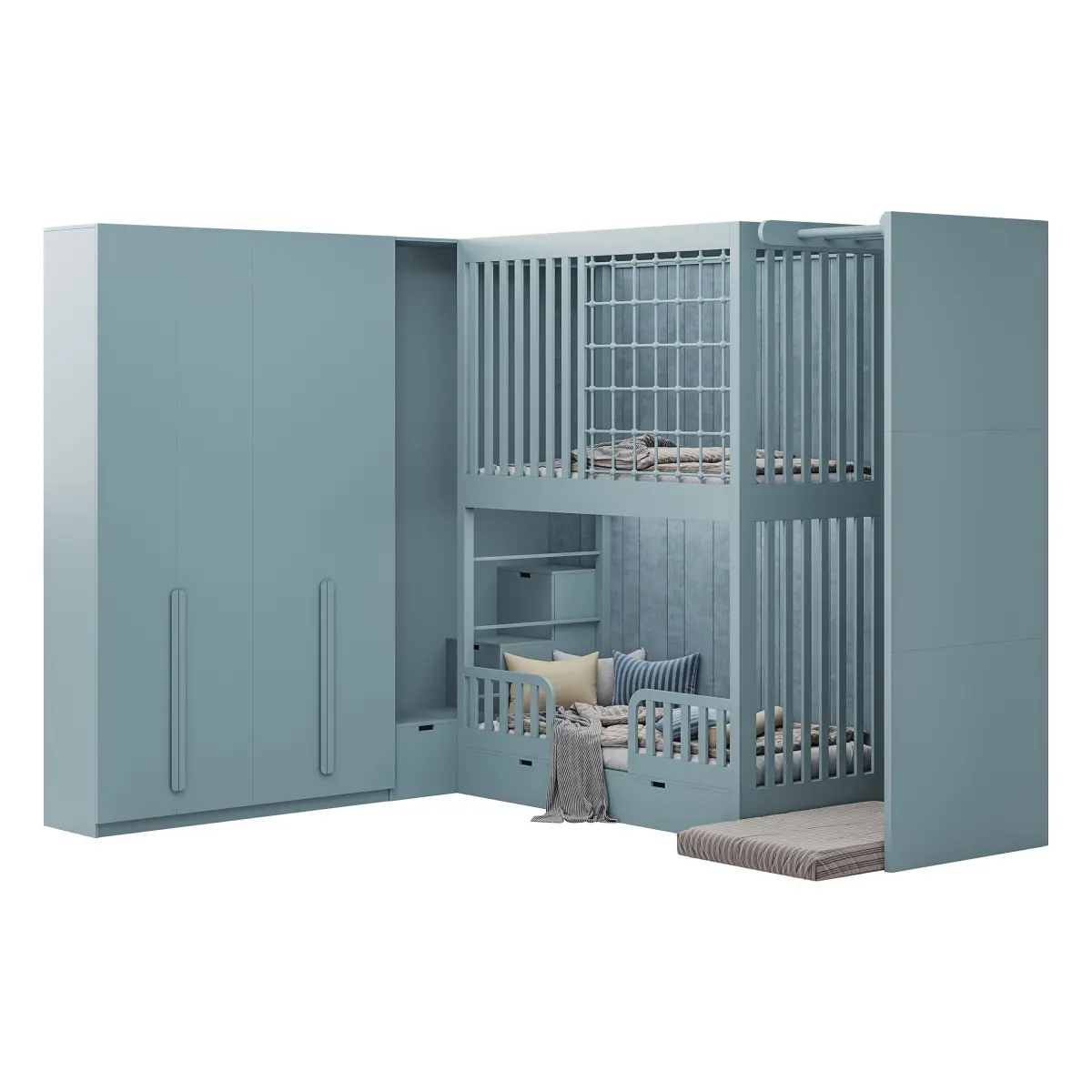 Name: Childrens bunk bed 37Type: modelFormat: 3Ds Max 2016Export: FBX, OBJRender: Corona (9)Polys: 646229Verts: 649859Matclasses: CoronaLegacyMtlUnits: MillimetersDimension: 3651.82 x 3368.5 x 3001.14
