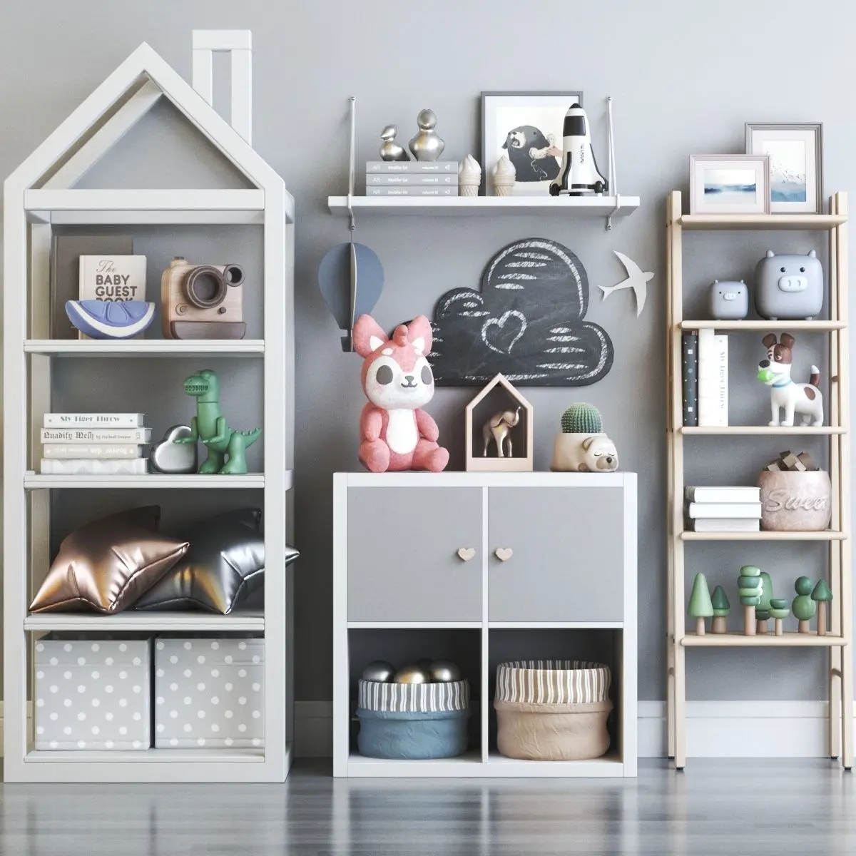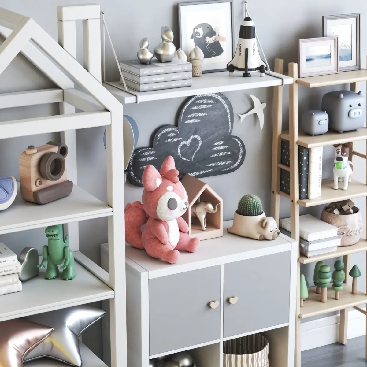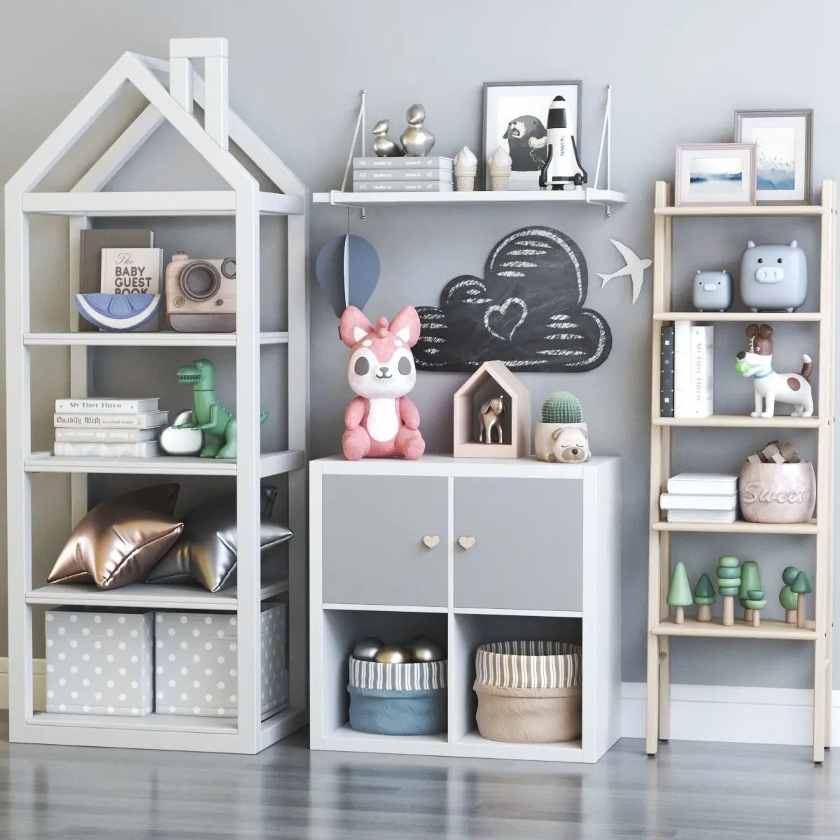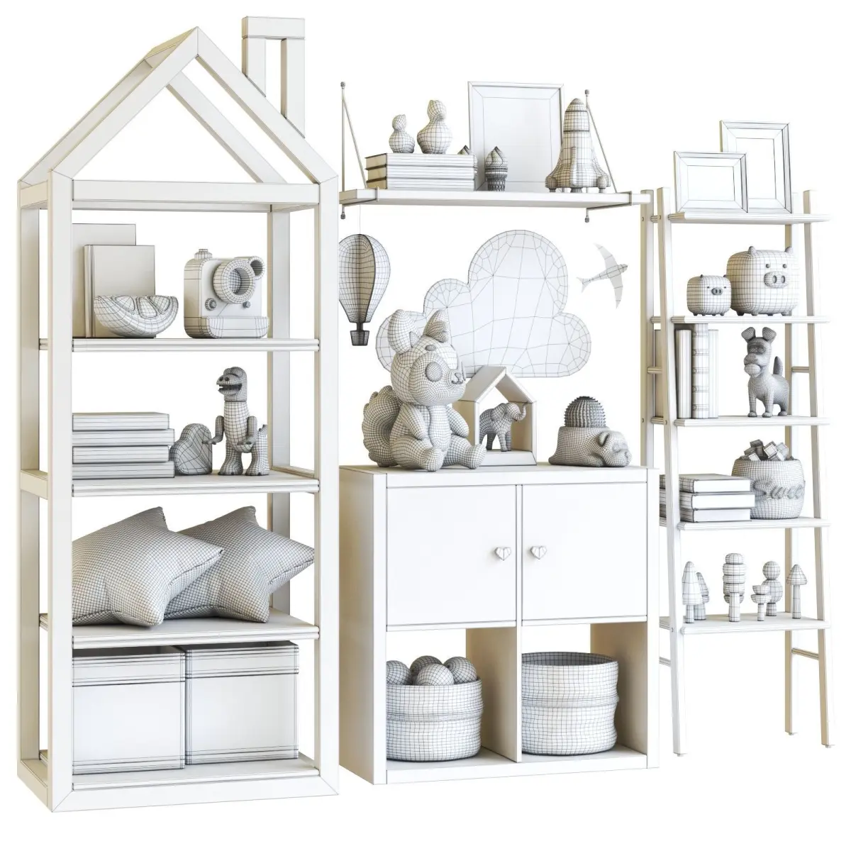 Furniture composition with shelving house, furniture and toys for the childrens room: