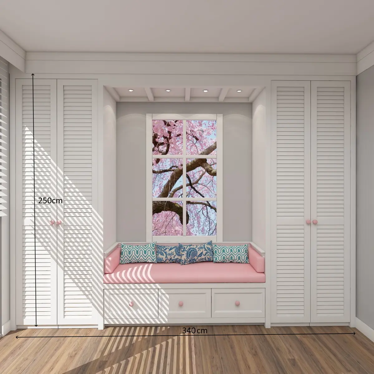Childroom bedroom with window seat and closets 3D model