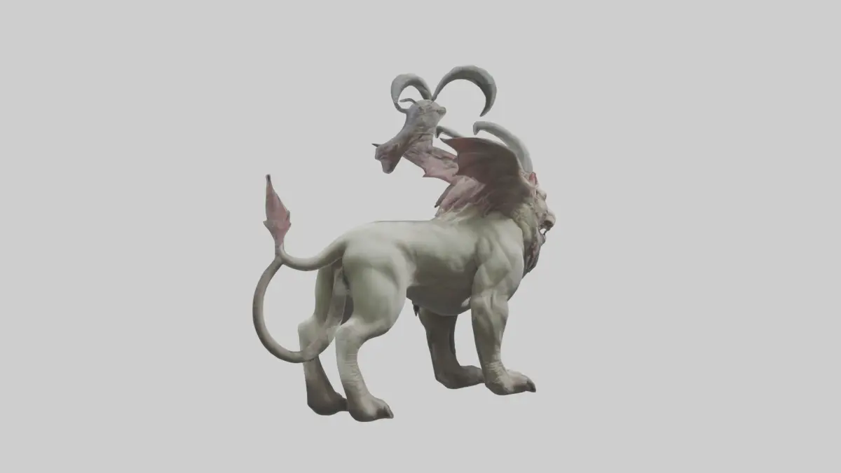 Chimera, hybrid creature, mythical monster, fantasy 3D model, dragon hybrid, lion hybrid, beast with wings, fantasy asset, RPG game model, fantasy animation, digital sculpting, creature design, horror 3D model, mythical beast, 3D character model, concept art model.