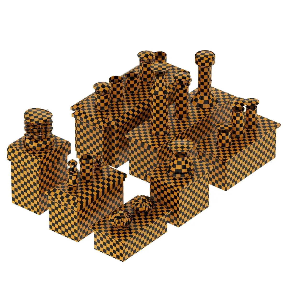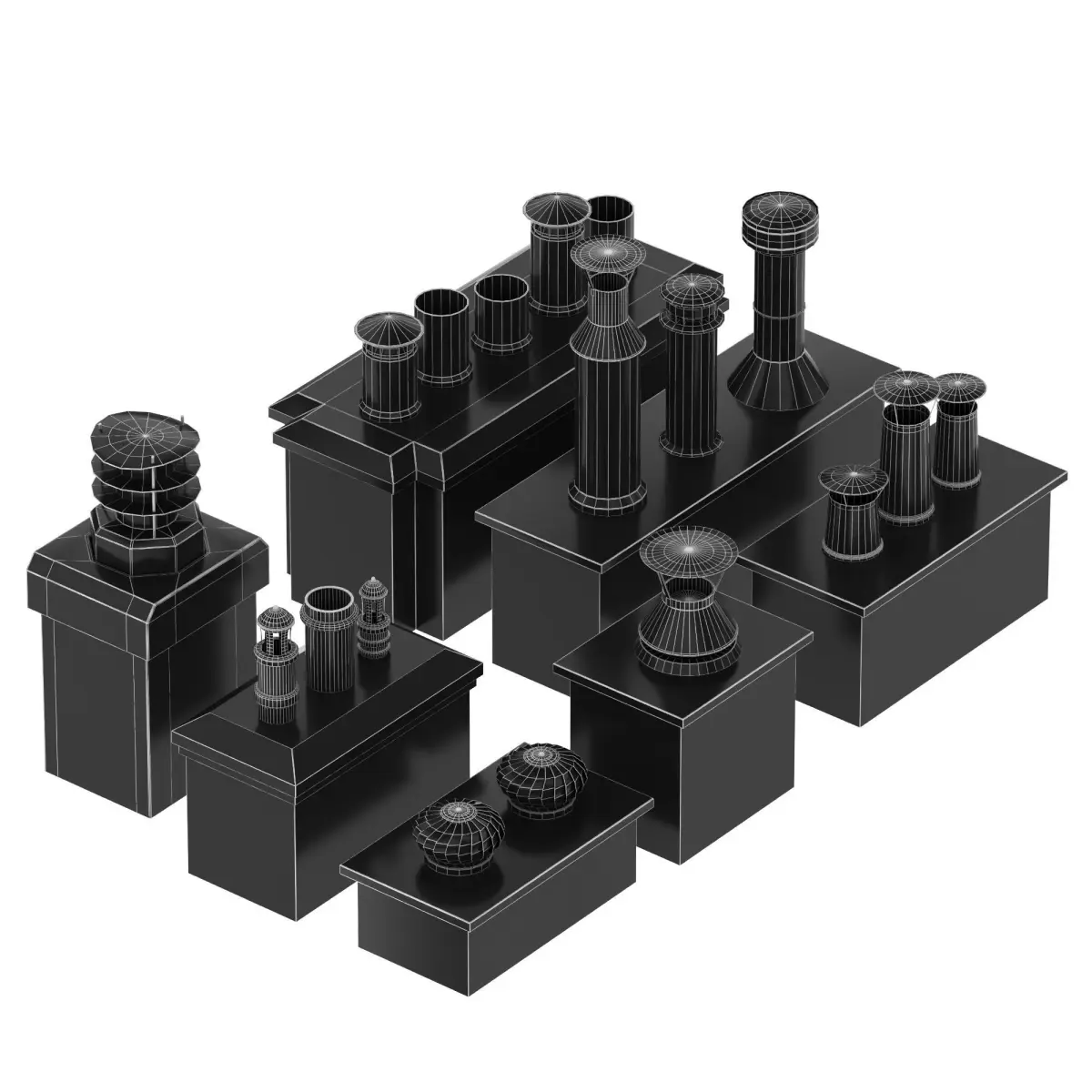 Enhanced chimney pack for tabletop miniature sceneries, dioramas and low poly gaming, design, animation. Inspired by 80's-90's rooftop elements, these pieces designed for industrial and residental units