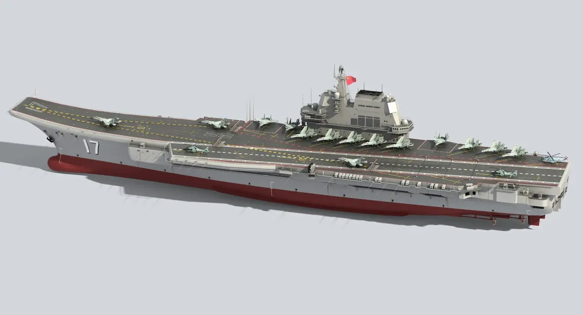 The aircraft carrier's design is based on the Soviet Union's Kuznetsov class, as China's first carrier, Liaoning, was constructed from an incomplete Kuznetsov-class vessel and the 001A is a refined version of Liaoning. It is slightly modified and upgraded compared to Liaoning, with improved radar and increased storage capacity for amm unition and fuel, allowing it to carry more aircraft than Liaoning (estimated to be between 30 and 40 jets and helicopters). It measures about 315 metres (1,033 ft) long, with a displacement of about 55,000 tonnes (70,000 loaded).The ship is believed to be powered by conventional oil-fired boilers driving steam turbines.It retains the ski jump takeoff, which limits its air wing to helicopters and Shenyang J-15 fighter jets and could be updated to stealth fighters such as the Shenyang J-31 or the Chengdu J-20; future Chinese carriers are planned to use catapults that allow the launch of heavier aircraft as well as stealth aircraft such as the Shenyang J-31 or the Chengdu J-20.