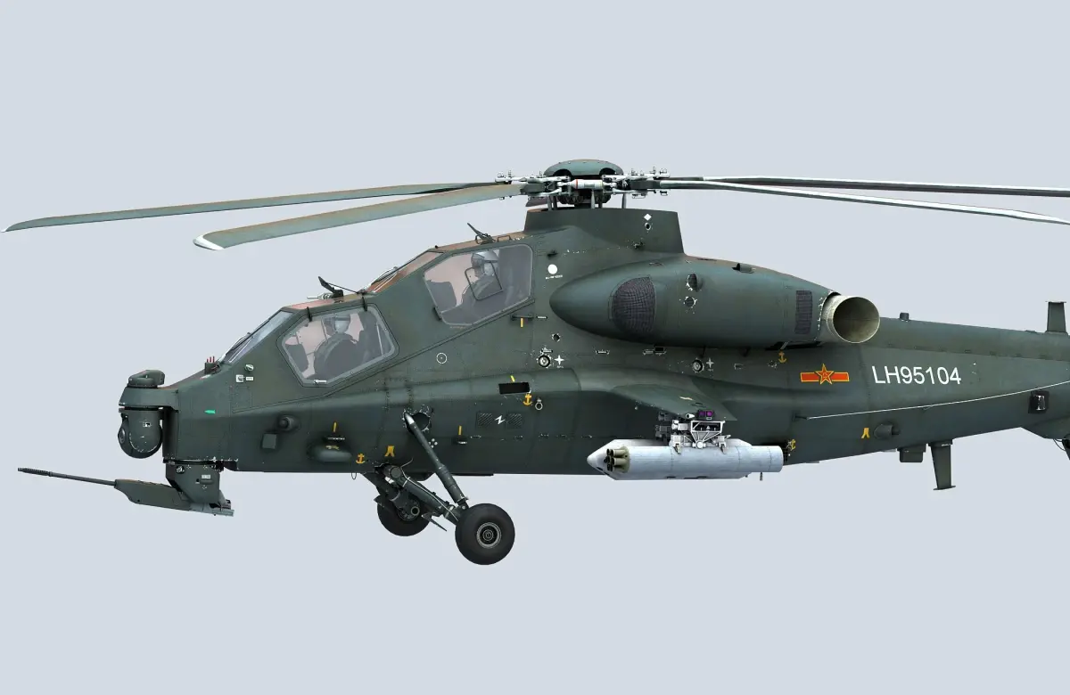 The WZ-10 (WZ = Wuzhuang Zhishengji, literally Armed Helicopter) is an attack helicopter developed by the People's Republic of China. It is designed primarily for anti-tank and battlefield interdiction operations, with a secondary air-to-air capability. It is said to be in the same class as the AgustaWestland A129 Mangusta, Denel Rooivalk, and Eurocopter Tiger. The Z-10 has a conventional attack helicopter layout with the pilot and weapon system operator sitting in tandem, stepped cockpits. The helicopter has a five-blade main rotor and a four-blade tail rotor. It has two engines, each in a pod aft of the cockpit. The fuselage has sloped sides in a diamond configuration to reduce the aircraft's radar cross-section.