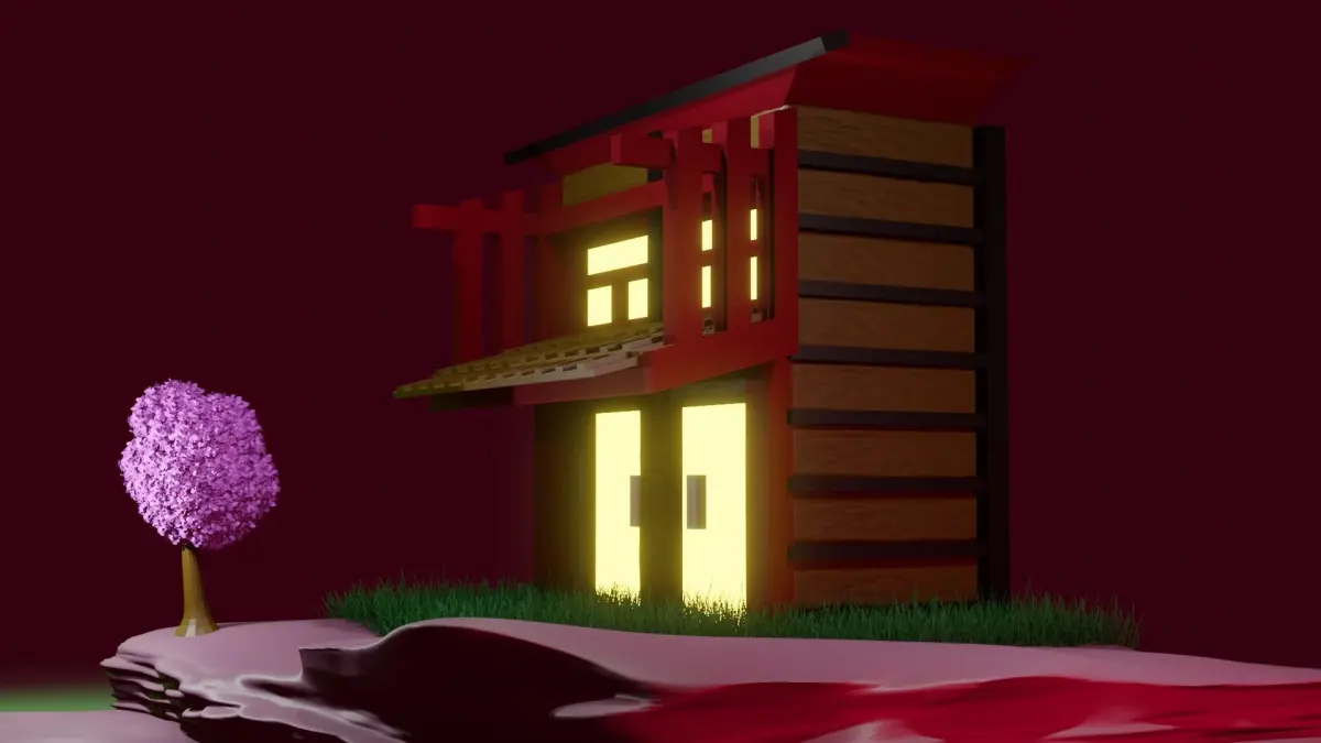 Hi there, This is a simple china house made of simple geometric shapes , with a simple sakura tree .The house is arounded by grass and has great lights in front doors.I hope this model will be useful for you , see you in another one.