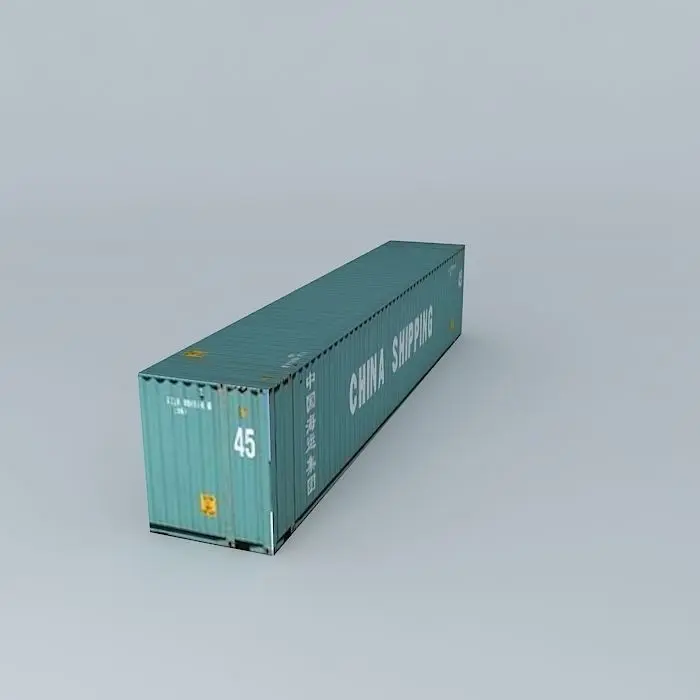 This 3D model was originally created with Sketchup 8 and then converted to all other 3D formats. Native format is .skp 3dsmax scene is 3ds Max 2016 version, rendered with Vray 3.00 A 45 feet China Shipping container.
