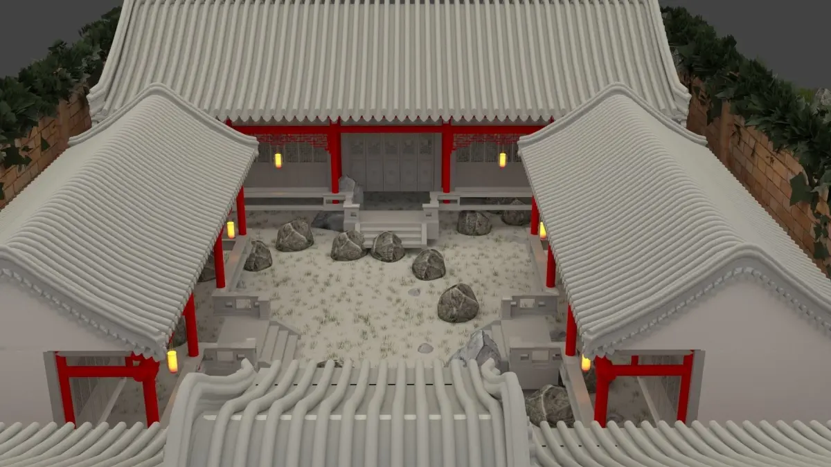 Chinese ancient courtyard house(siheyuan) with gate 3D models created in 3D Max(.max,.obj) . A siheyuan(Beijing Courtyard) is a historical type of residence that was commonly found throughout China, Siheyuan refers to a courtyard surrounded by buildings on all four sides. It also appears in English translation as courtyard houses