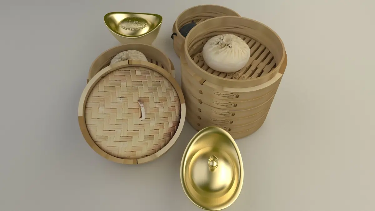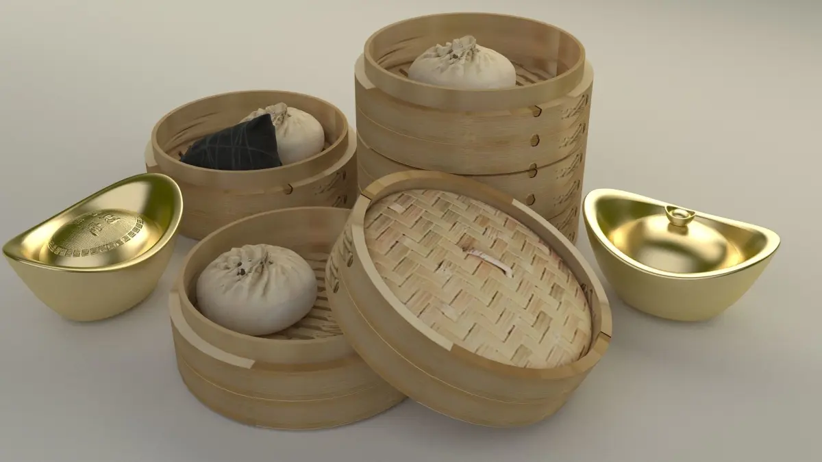 Chinese gold Ingot( and bamboo steamer 3D models created in 3D Max.(.max,.obj,.stl) . All scene and texture map are included in Zip file. All scene are rendered by VRay.Available files: chinese_gold_ingot_bamboo_steamerC.rar