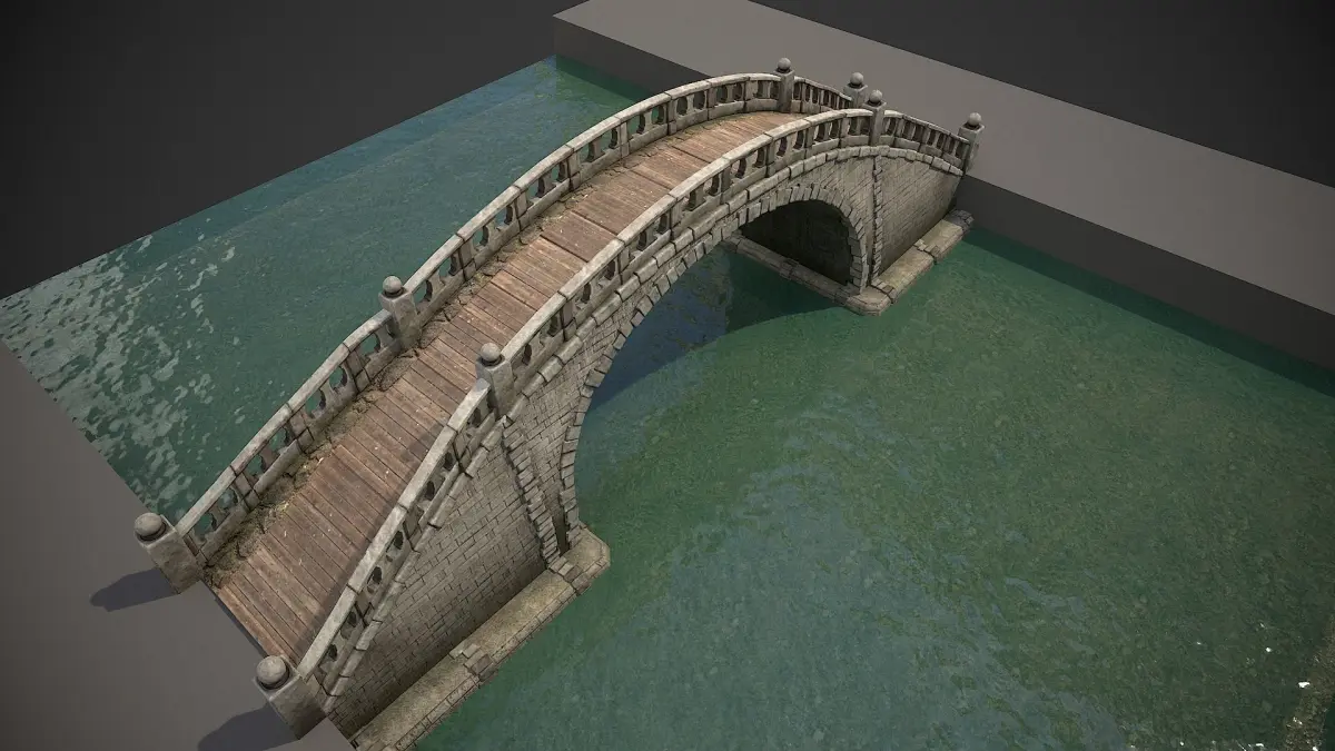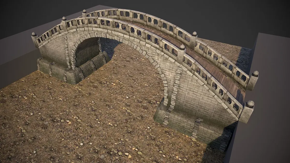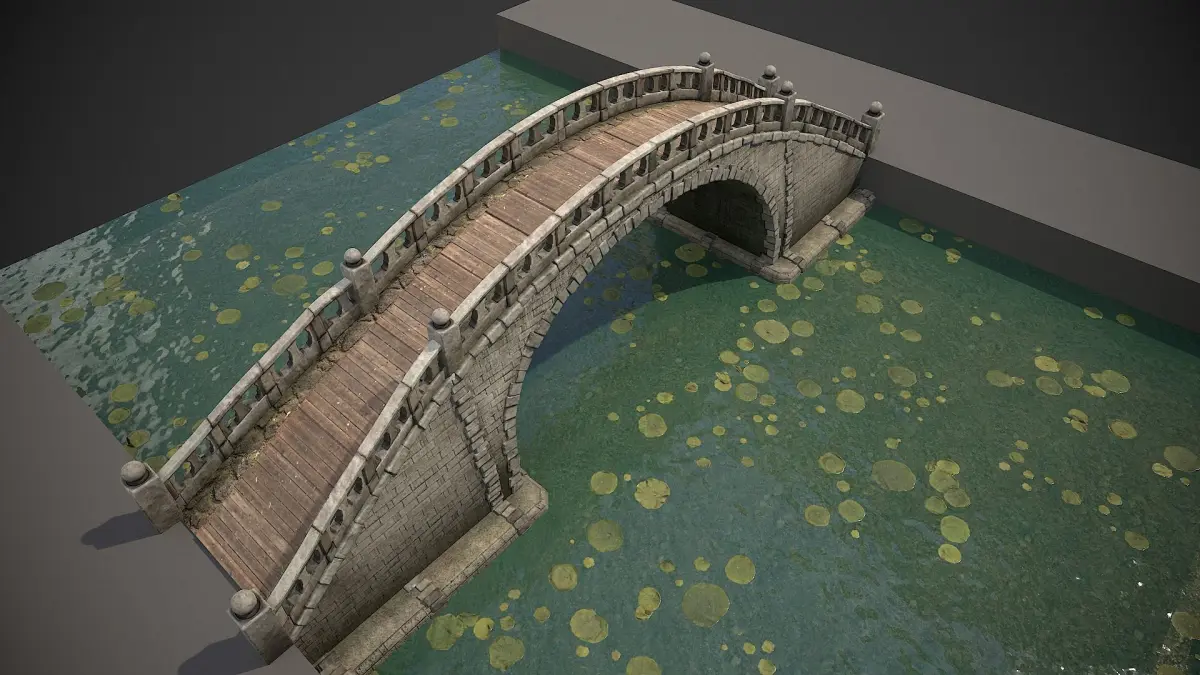 Game ready model. Chinese Bridge fully textured, sculpted and rendered with Physical based rendering (PBR) - Shown images have been rendered in Marmoset Toolbag . Model contains lods.Detailed information about the lods is in the screenshots.