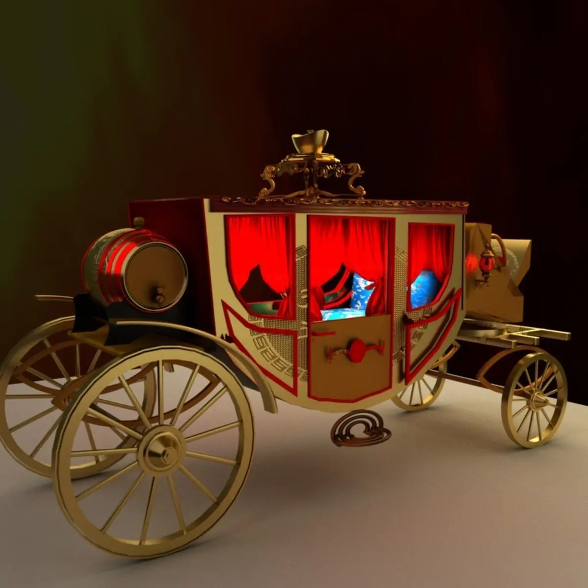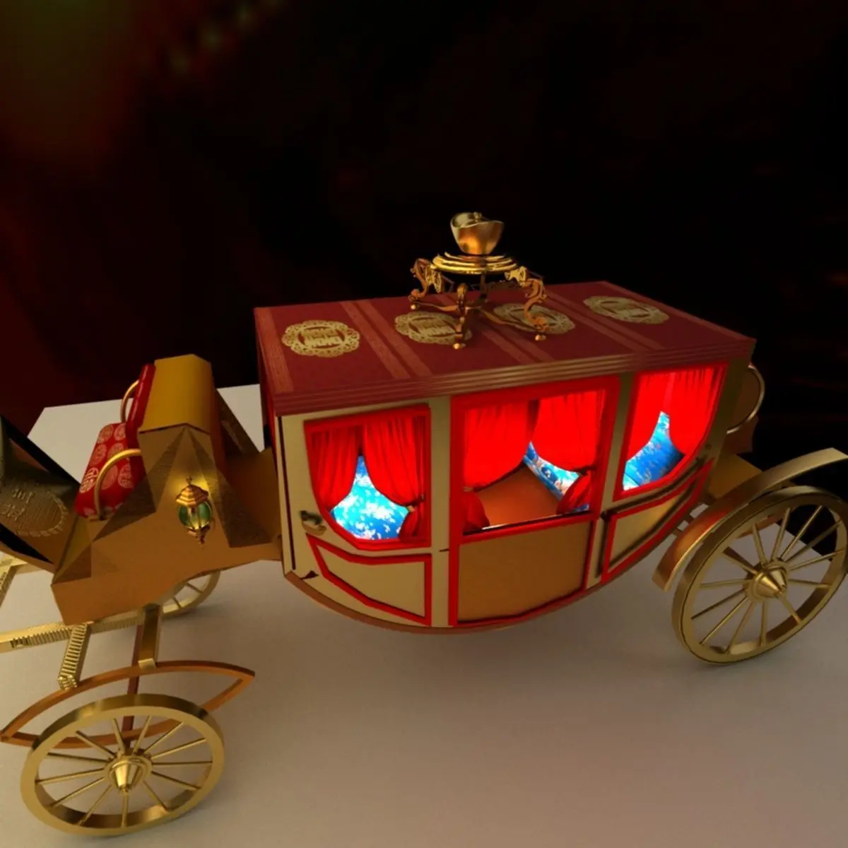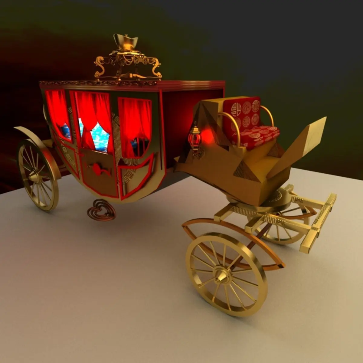 Chinese carriage with yuanbao created in 3D Max.(.max,.obj) . All scene and texture map are included in Zip file. Final images rendered with Vray.