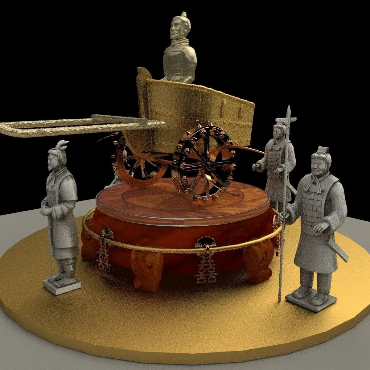 Chinese chariot with warrior 3D models created in 3D Max. All scene and texture map are included in Zip file. All scene are rendered by VRay.Available files: chinese_display_stand_chariotC.rarautodesk(.FBX)3D Maxwavefront(.OBJ)Sterolithography(.STL) 3D printer format readyImage file(.jpg)