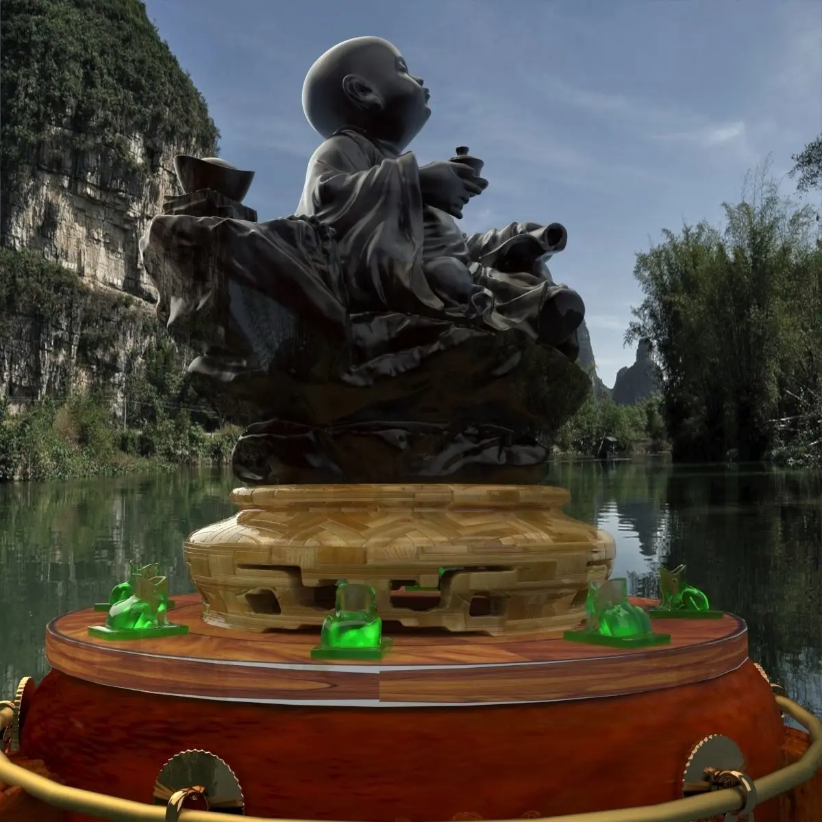 Chinese display stand with monk kid 3D models created in 3D Max.(.max,.obj) . All scene and texture map are included in Zip file. All scene are rendered by VRay.Available files: chinese_display_stand_monk_kidC.rar