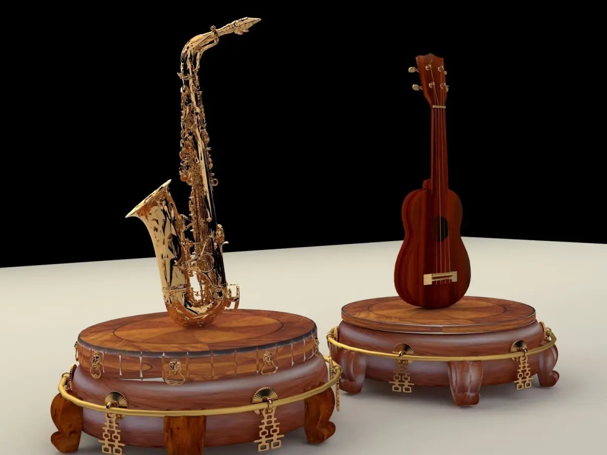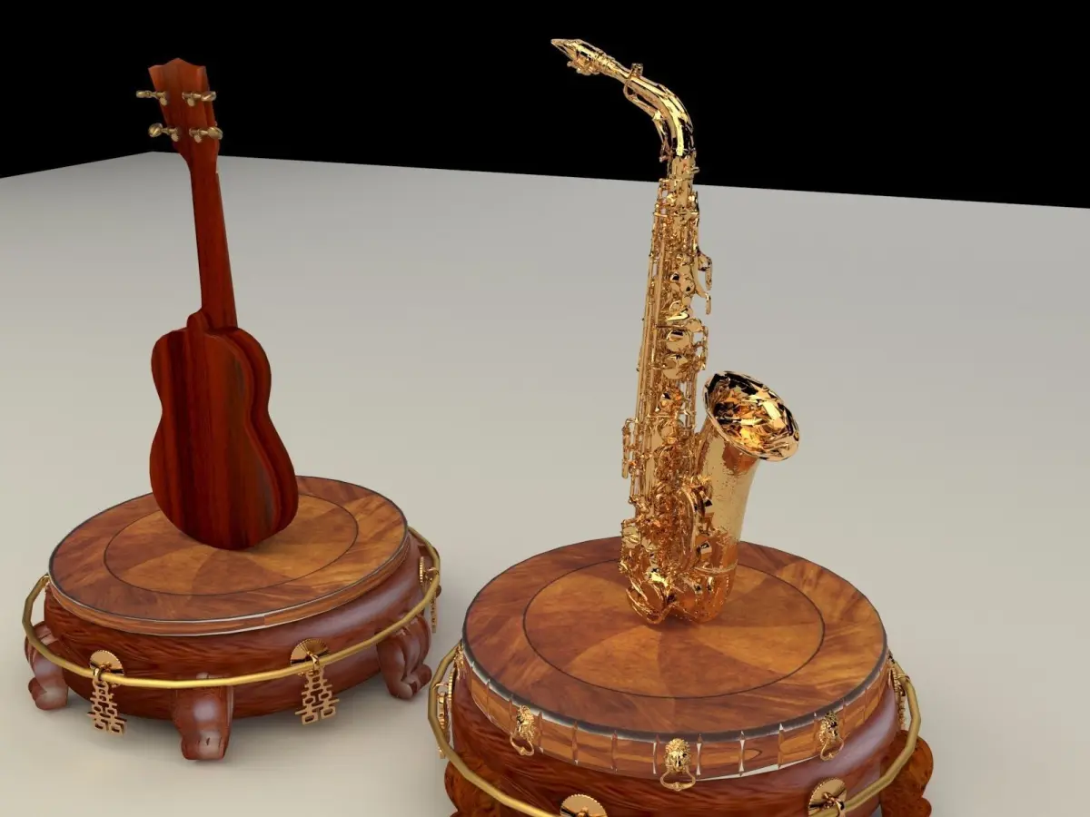 Chinese display stand with ukulele and saxophone 3D models created in 3D Max.(.max,.obj) . All scene and texture map are included in Zip file. All scene are rendered by VRay.Available files: chinese_display_standF.rar