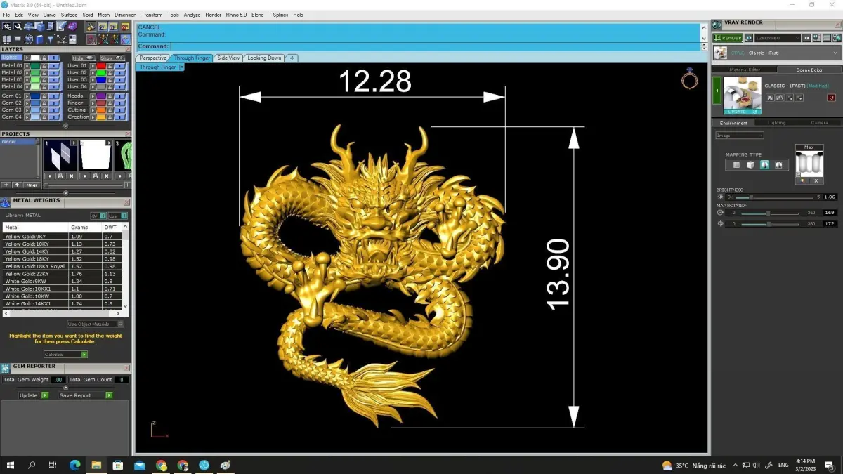 This Chinese dragon jewelry model features a highly detailed and dynamic dragon form inspired by traditional Asian mythology. The design showcases strong flowing curves, layered scales, sharp claws, and an expressive dragon head, creating a powerful and symbolic appearance.