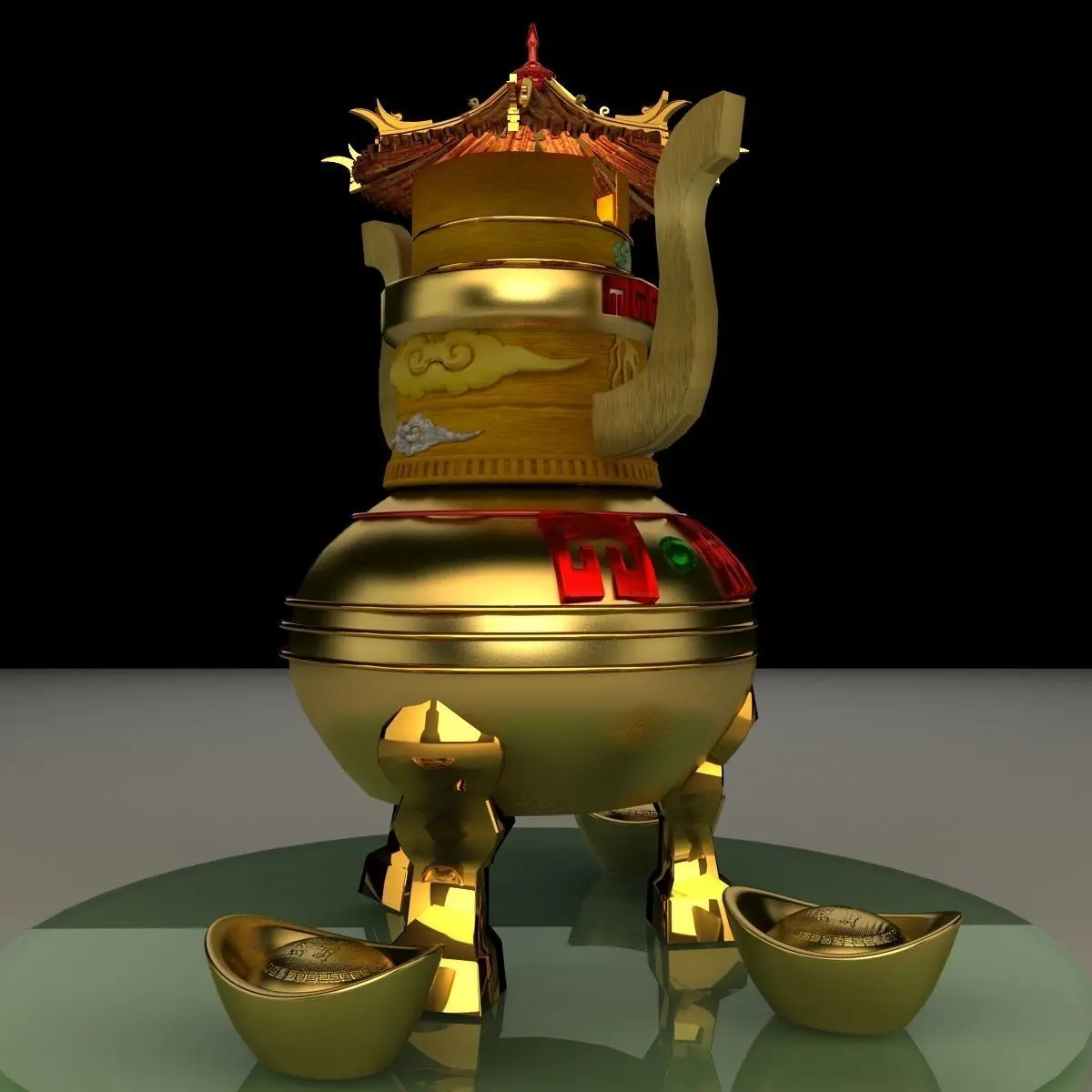 Chinese gold Ingot(Yuan Bao) sculpture 3D models created in 3D Max.(.max,.obj) . All scene and texture map are included in Zip file. All scene are rendered by VRay.Available files: Chinese_gold_ingot_pot_towerC.rarAvailable files: