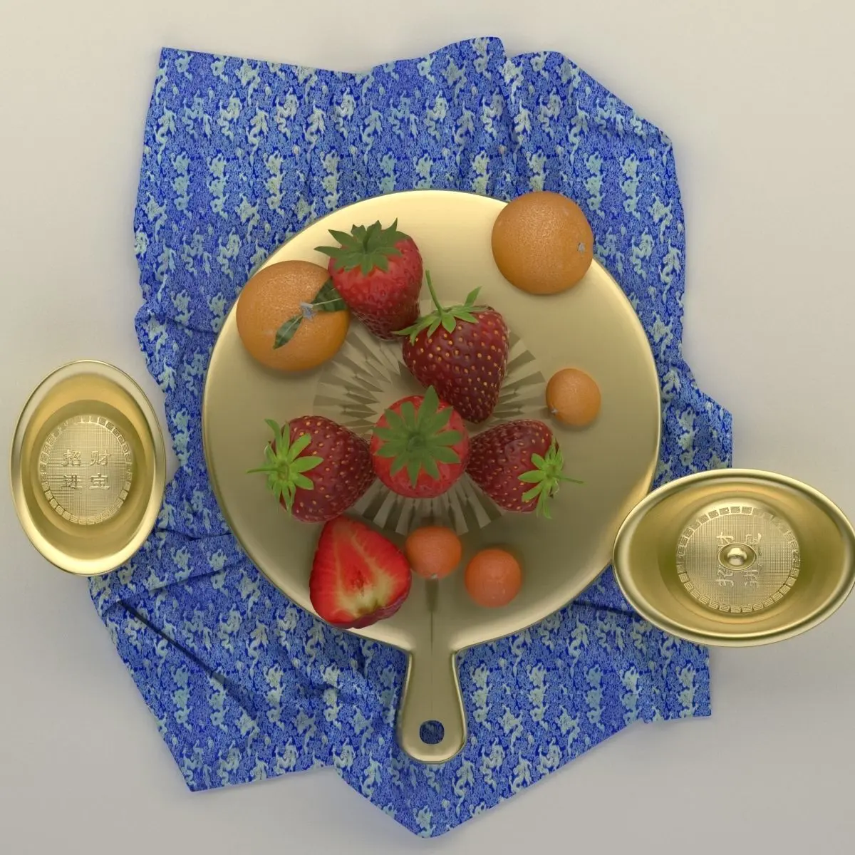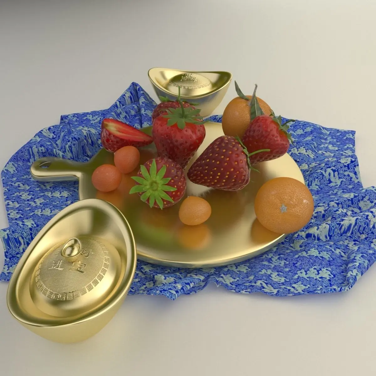 Chinese gold Ingot(Yuan Bao) and oranges 3D models created in 3D Max.(.max,.obj,.stl) . All scene and texture map are included in Zip file. All scene are rendered by VRay.Available files: chinese_yuanbao_strawberryA.rar