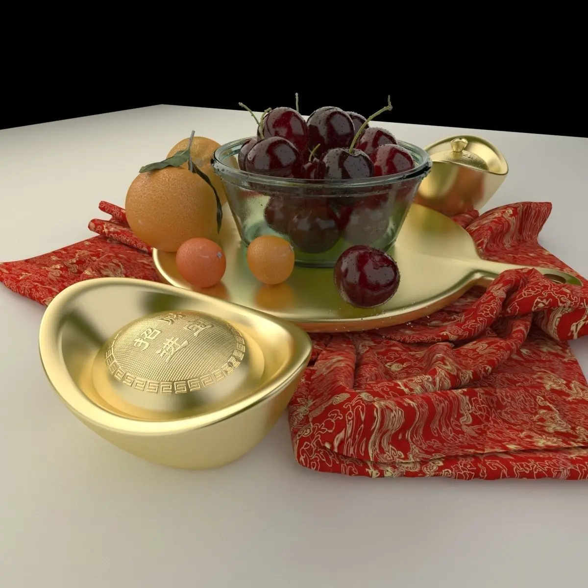 Chinese gold Ingot(Yuan Bao) and oranges 3D models created in 3D Max.(.max,.obj,.stl) . All scene and texture map are included in Zip file. All scene are rendered by VRay.Available files: chinese_yuanbao_cheeryA.rar