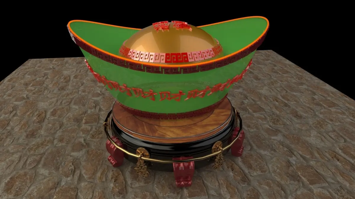Chinese gold Ingot with bun sculpture 3D models created in 3D Max.All scene and texture map are included in Zip file. All scene are rendered by VRay.