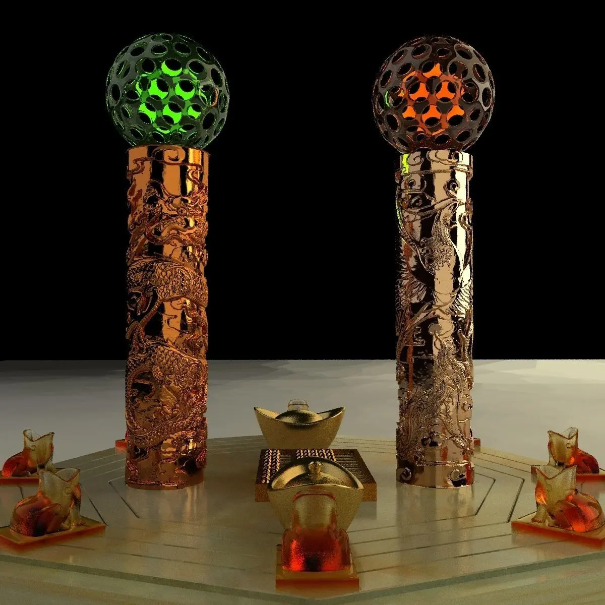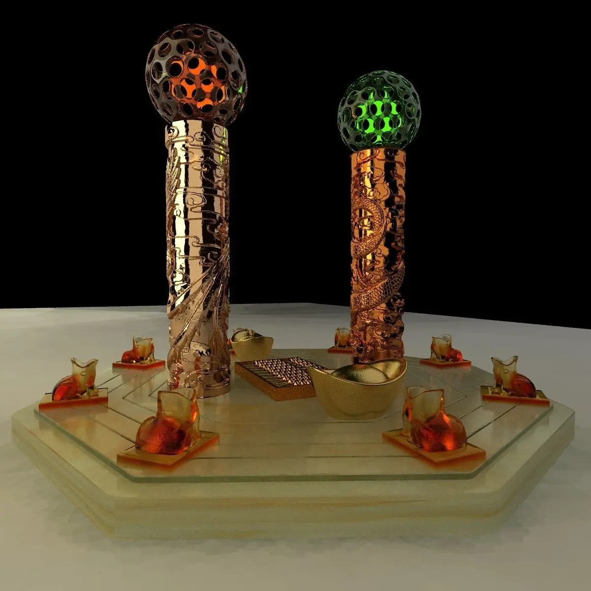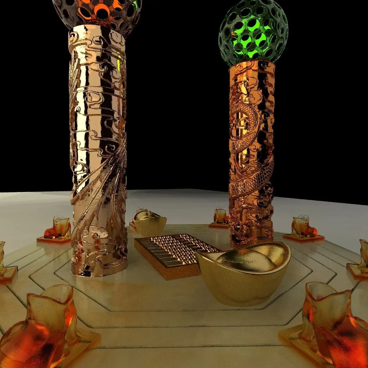 Chinese gold abacus and Ingot(Yuan Bao) ice sculpture 3D models created in 3D Max.(.max,.obj) . All scene and texture map are included in Zip file. All scene are rendered by VRay.Available files: chinese_golden_abacusC.rarAvailable files: