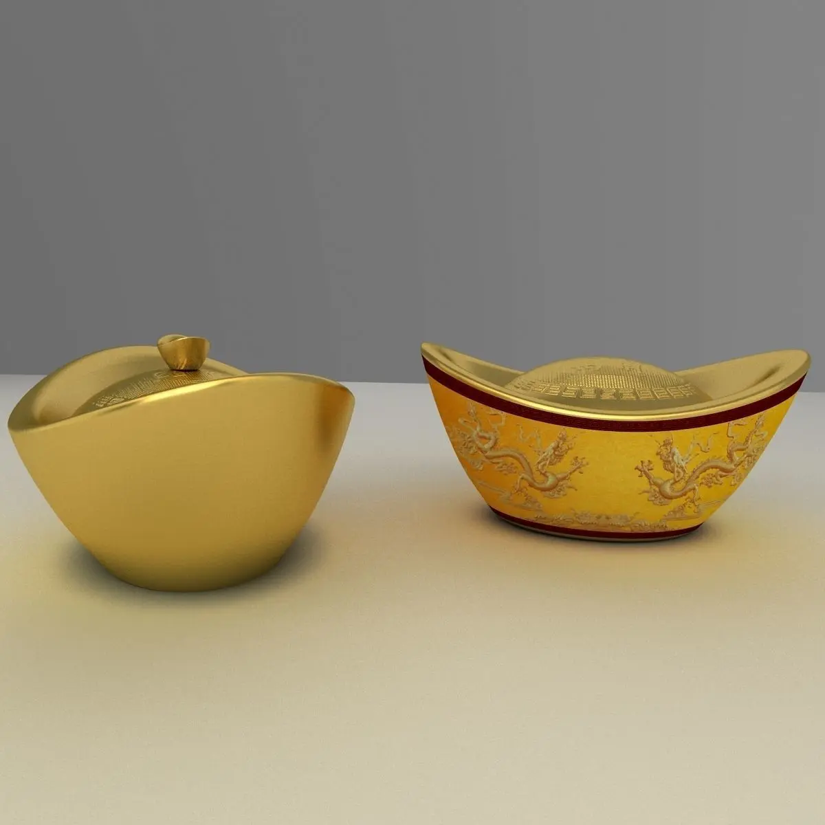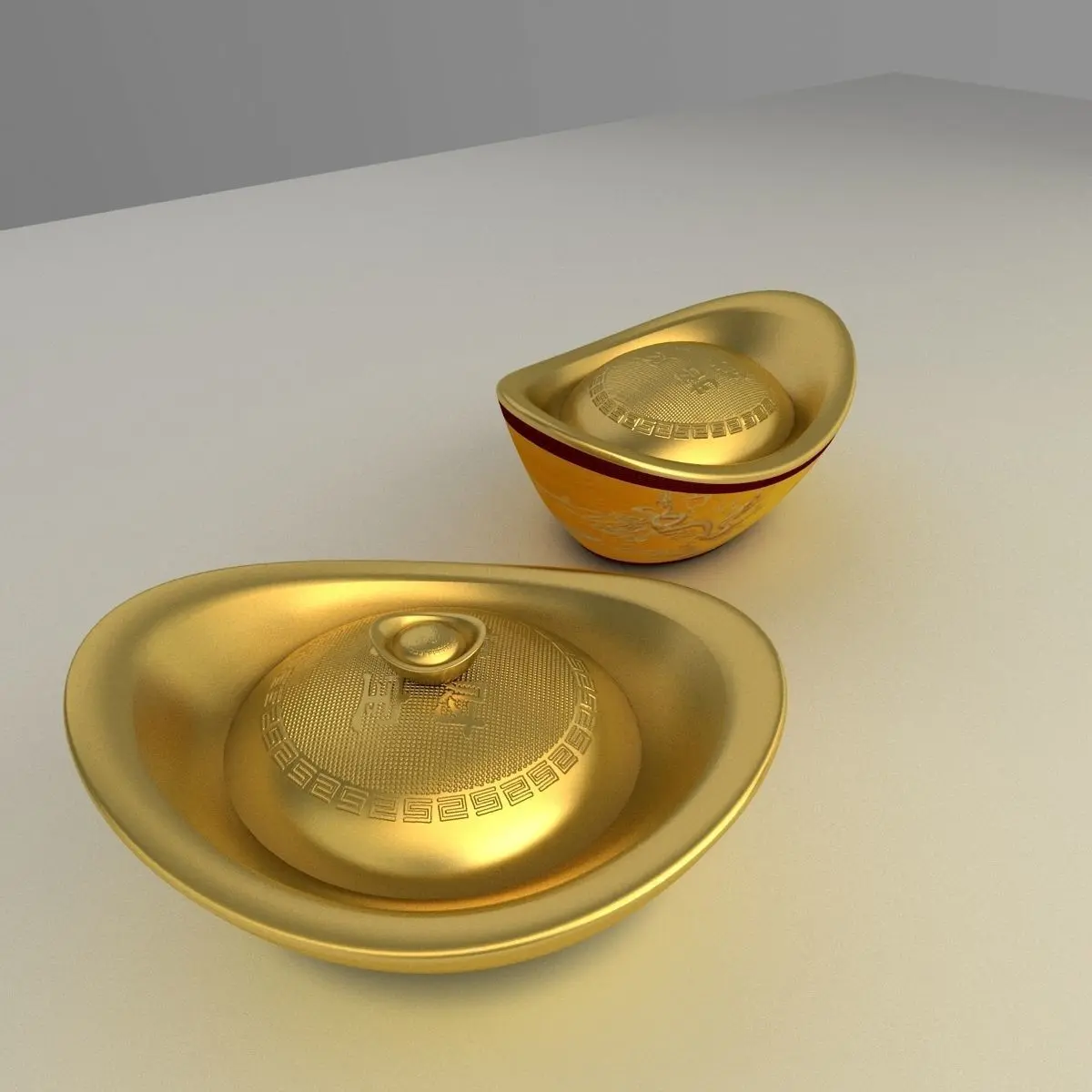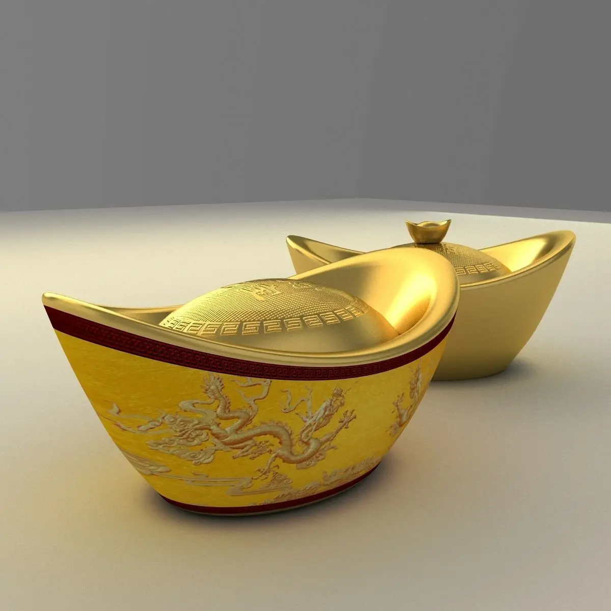 Chinese gold Ingot(Yuan Bao) ice sculpture 3D models created in 3D Max.(.max,.obj) . All scene and texture map are included in Zip file. All scene are rendered by VRay.Available files: chinese_dragon_border_gold_ingotG.zipAvailable files: