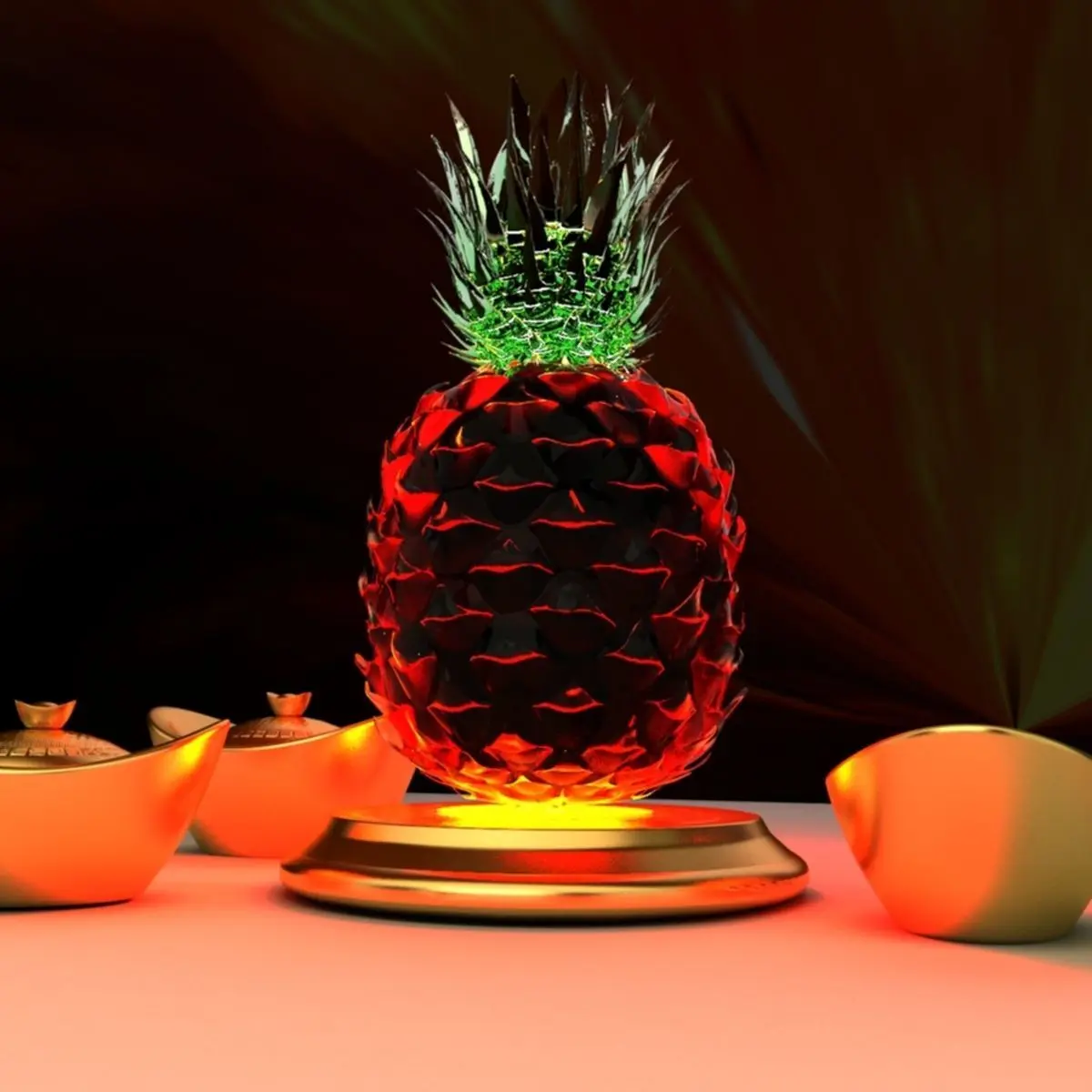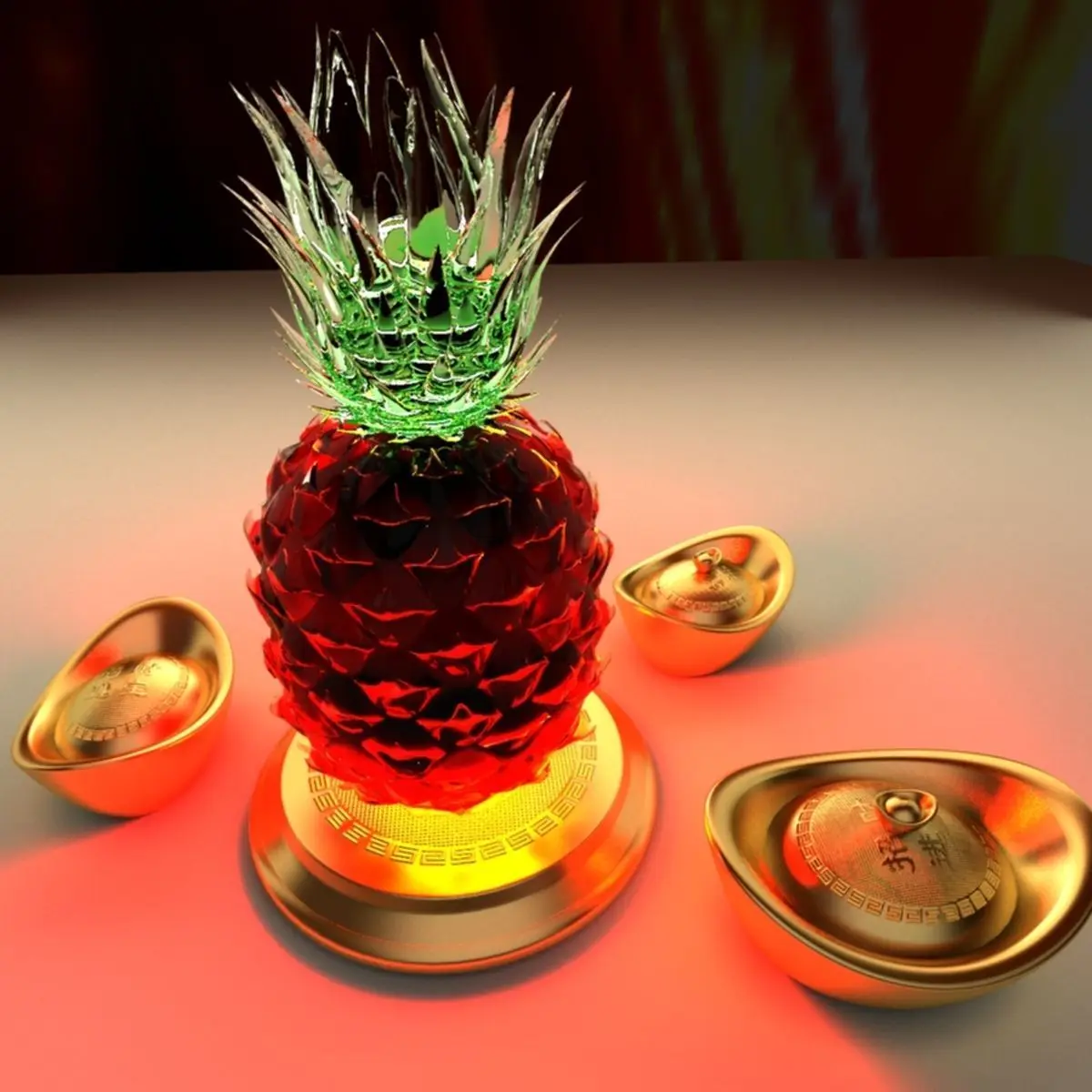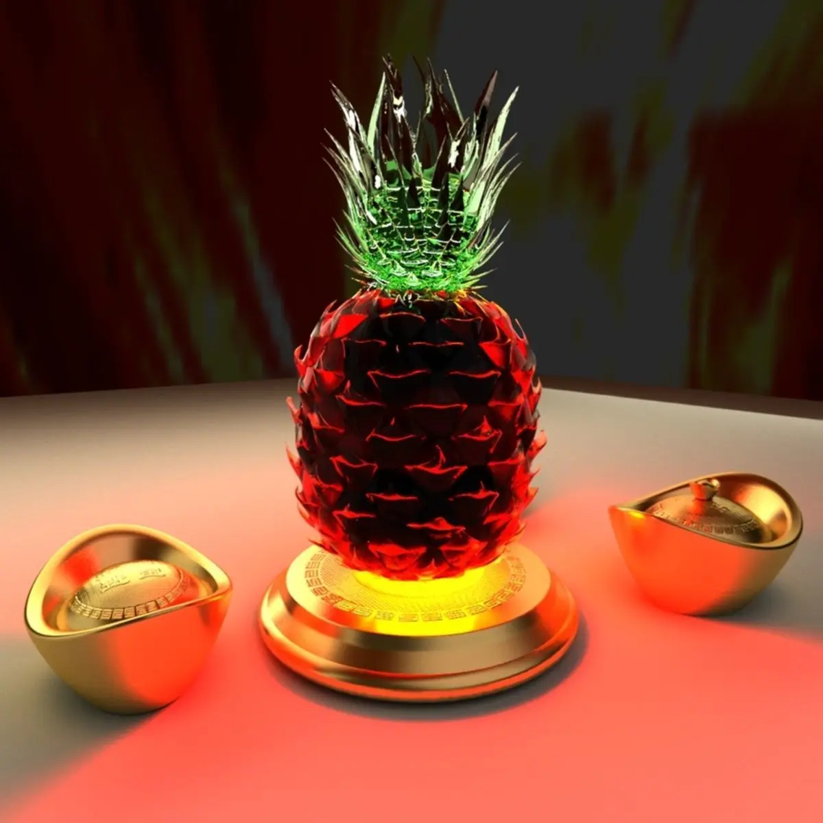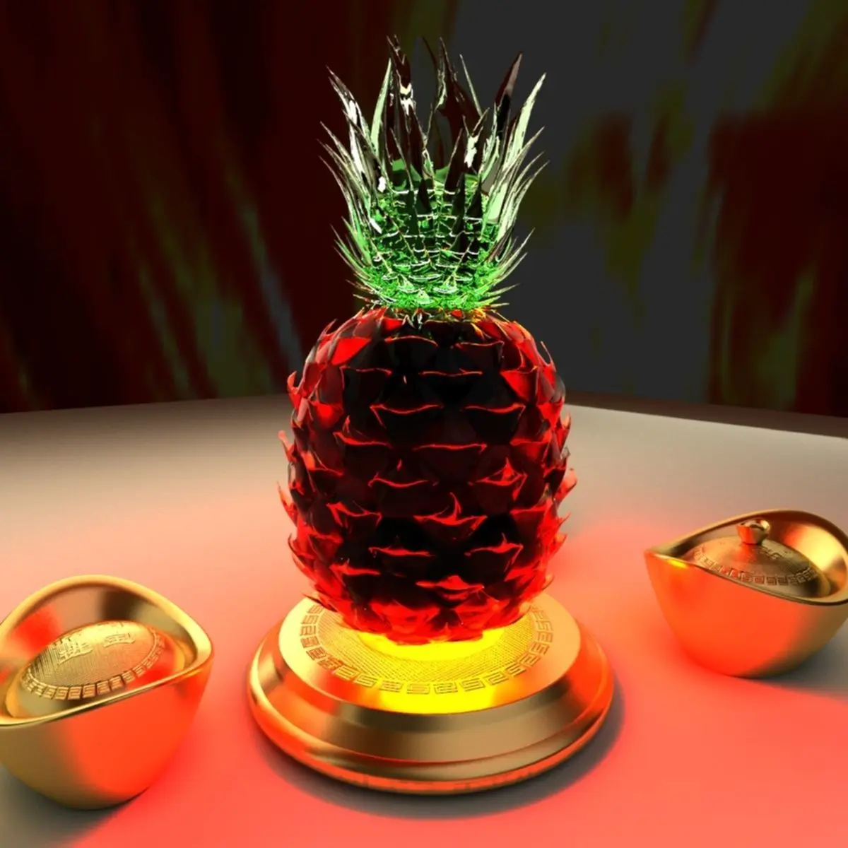 Chinese gold Ingot(Yuan Bao) and pineapple sculpture 3D models created in 3D Max.(.max,.obj,.stl) . All scene and texture map are included in Zip file. All scene are rendered by VRay.Available files: chinese_yuanbao_pineappleA.rar