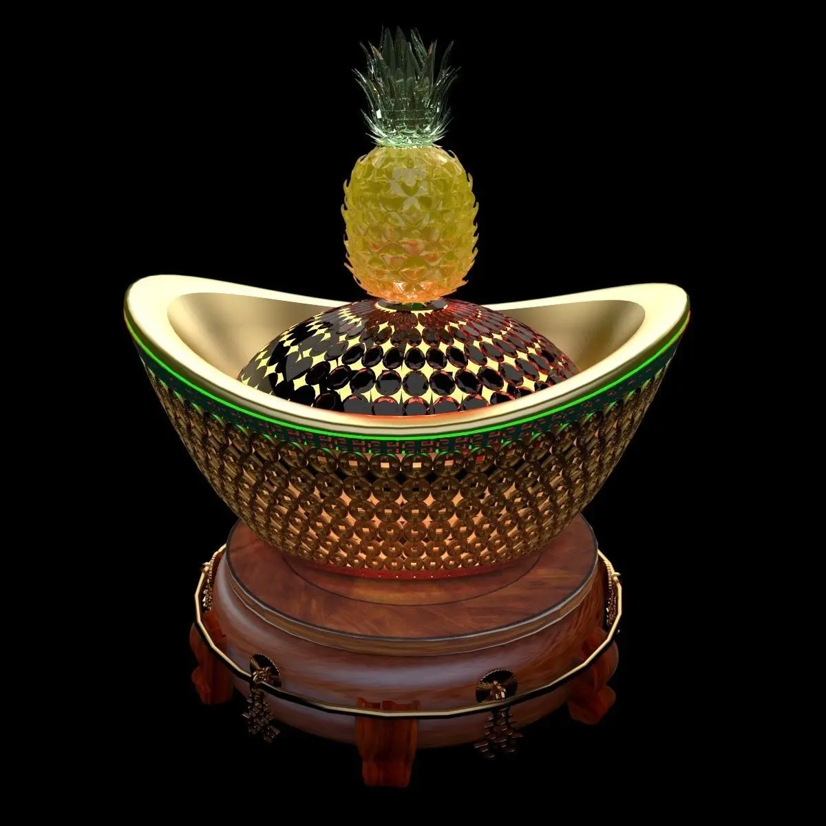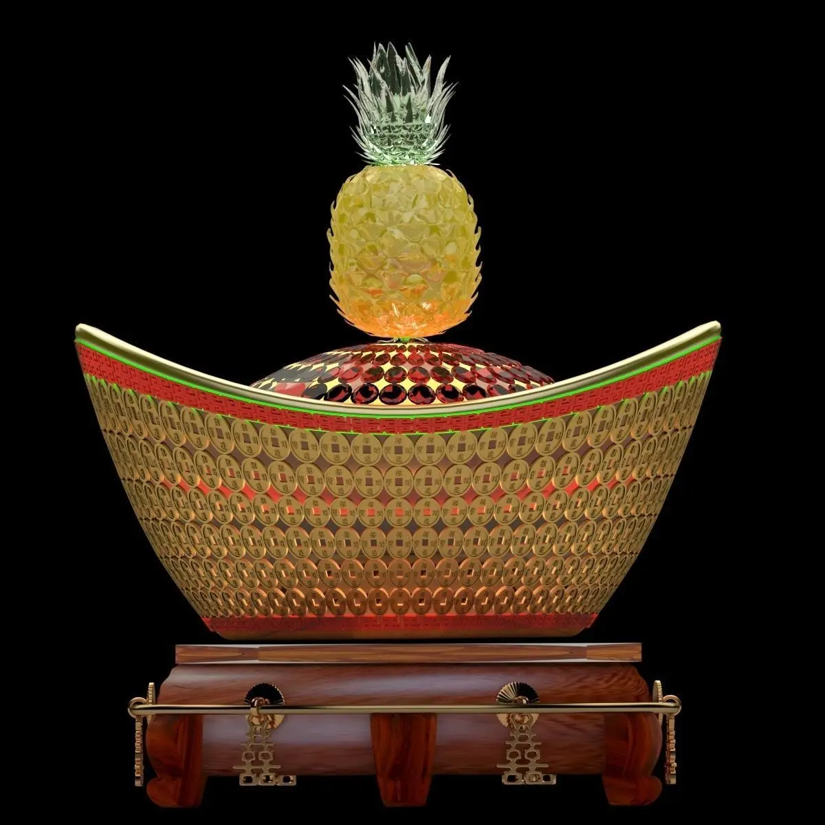 Chinese gold Ingot(Yuan Bao) ice sculpture 3D models created in 3D Max.(.max,.obj,.stl) . All scene and texture map are included in Zip file. All scene are rendered by VRay.Available files: chinese_pineapple_gold_yuanbaoA.rar