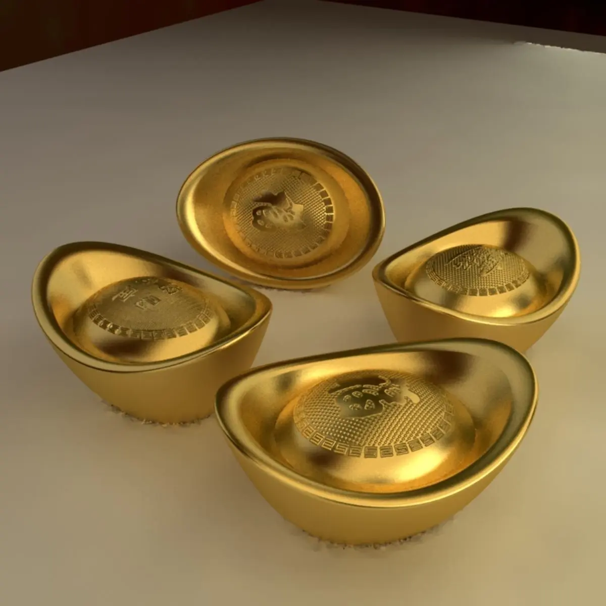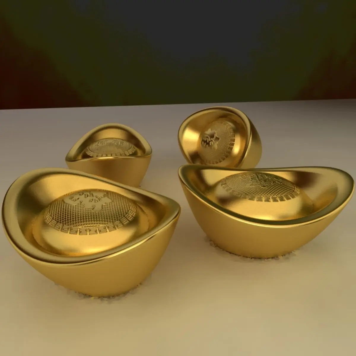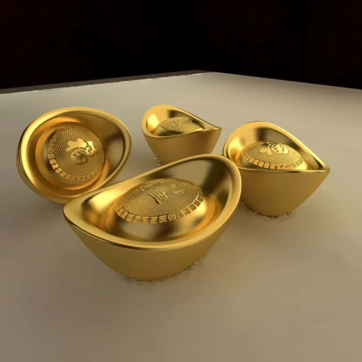 Chinese gold Ingot(Yuan Bao) sculpture 3D models created in 3D Max.(.max,.obj,.stl) . All scene and texture map are included in Zip file. All scene are rendered by VRay.Available files: chinese_four_yuanbaoA.rarAvailable files: