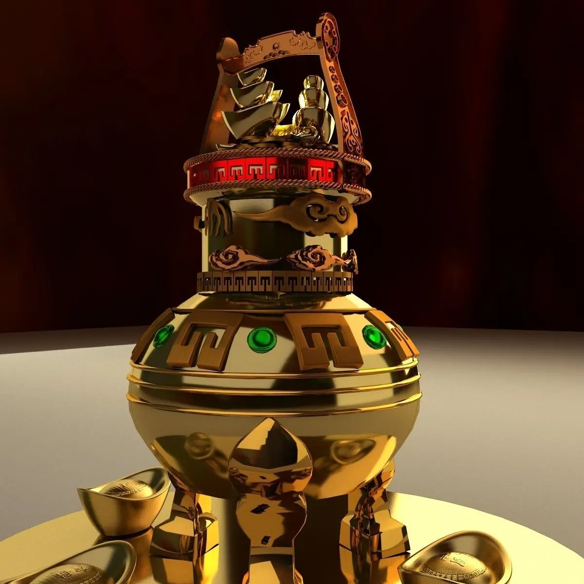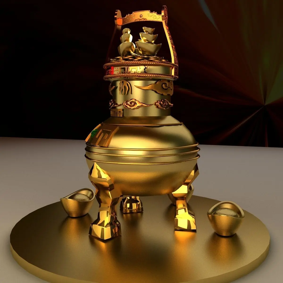 Chinese gold Ingot(Yuan Bao) sculpture 3D models created in 3D Max.(.max,.obj) . All scene and texture map are included in Zip file. All scene are rendered by VRay.Available files: chinese_gold_ingot_potD.rarAvailable files: