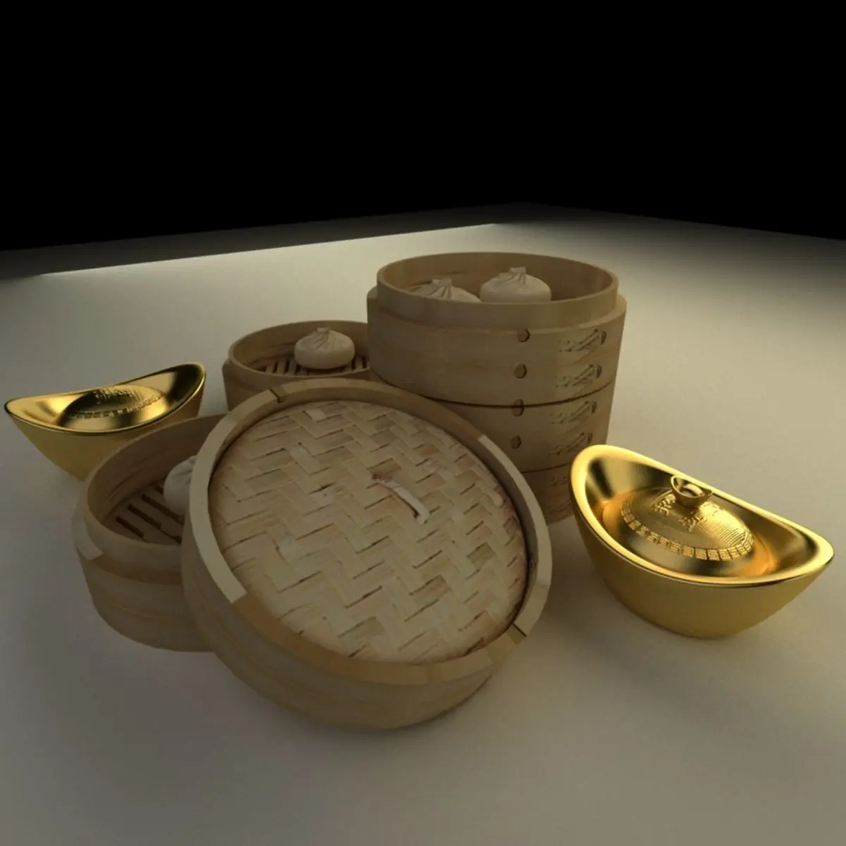 Chinese gold Ingot(Yuan Bao) and bamboo steamer 3D models created in 3D Max.(.max,.obj,.stl) . All scene and texture map are included in Zip file. All scene are rendered by VRay.Available files: chinese_gold_ingot_bamboo_steamerC.rar