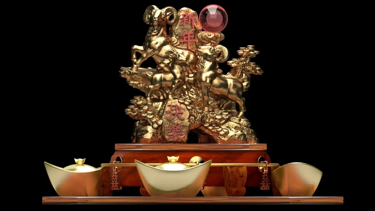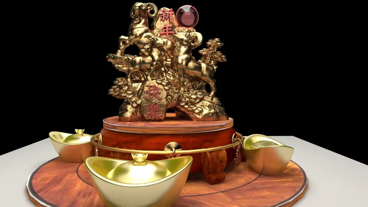 Chinese gold Ingot(Yuan Bao) and goats sculpture 3D models created in 3D Max. All scene and texture map are included in Zip file. All scene are rendered by VRay.Available files: chinese_yuanbao_goatsC zip file