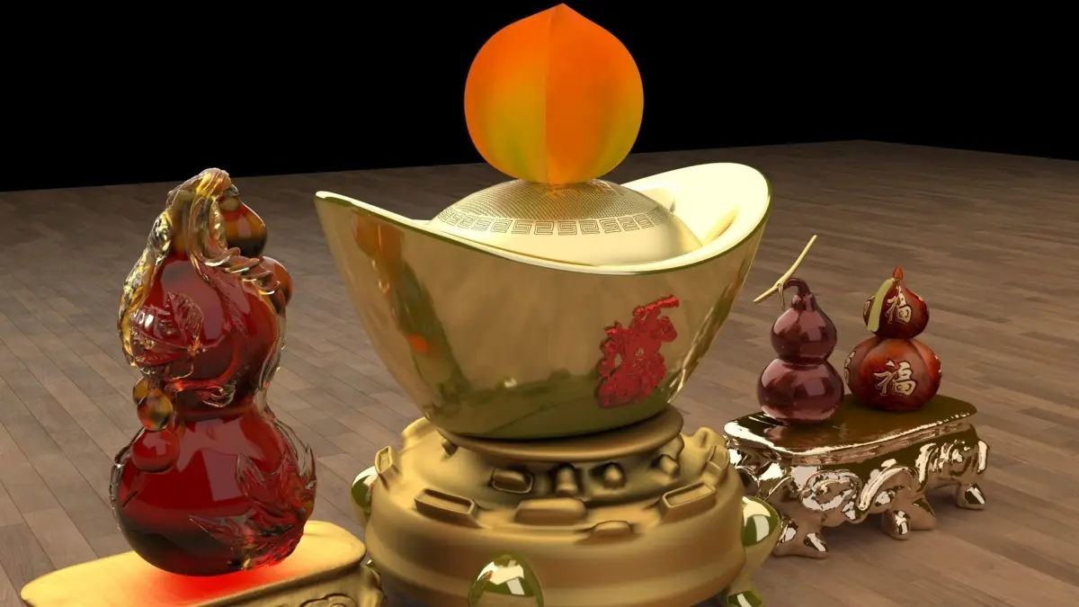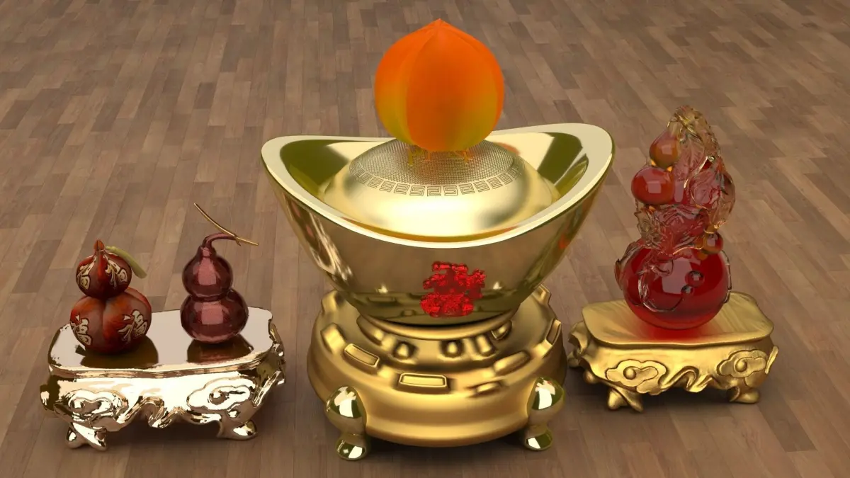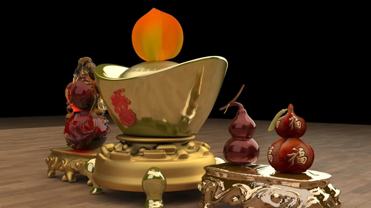 Chinese gold Ingot and gourd 3D models created in 3D Max. All scene and texture map are included in Zip file. All scene are rendered by v-ray.Available files: chinese_yuanbao_peach_gourdA zip file