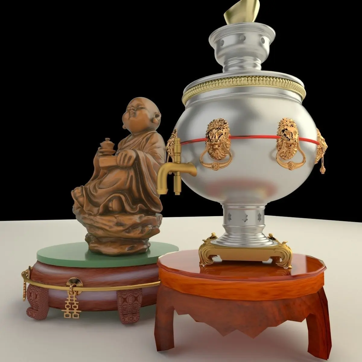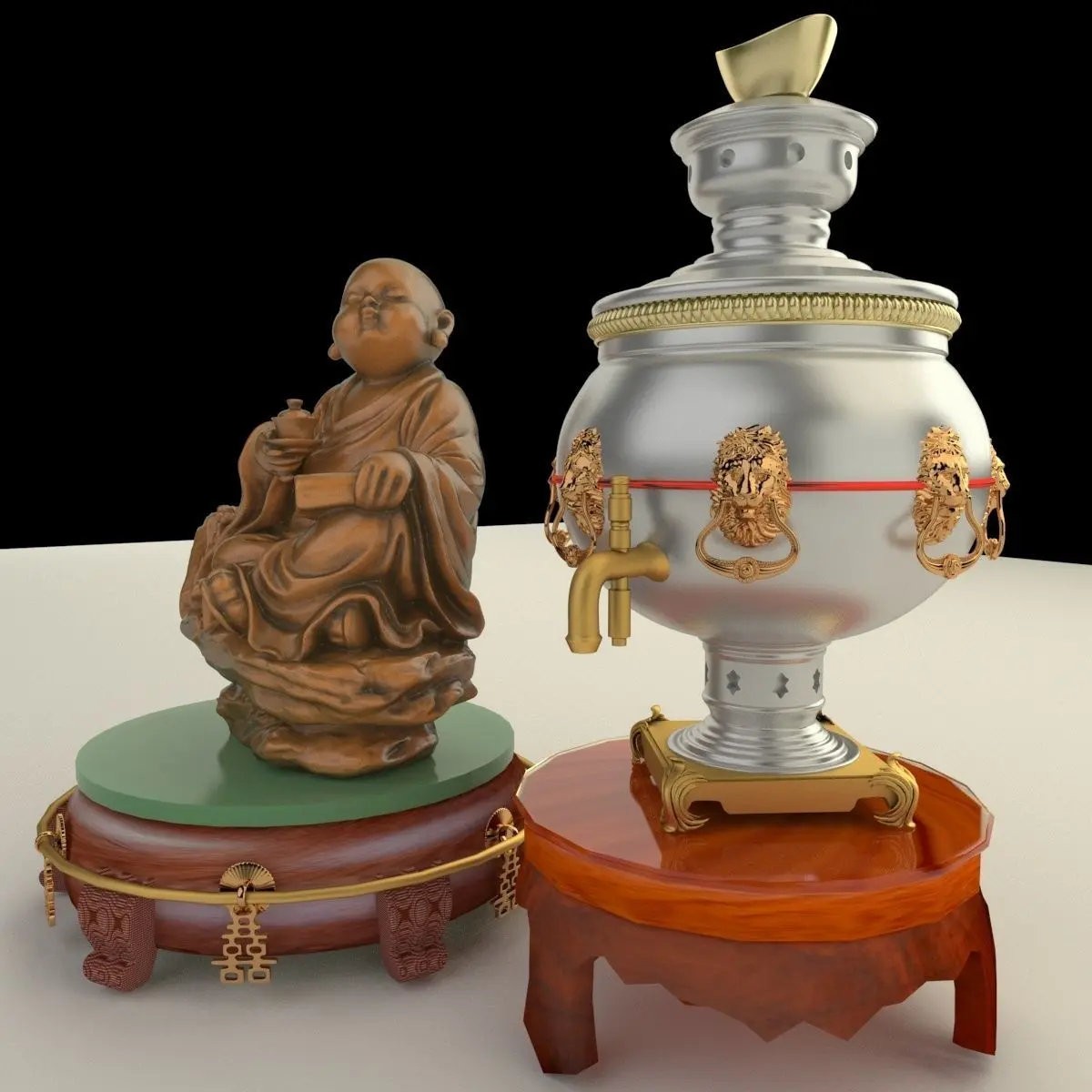 Chinese tea pot and yuanbao with display stand and mon kid 3D models created in 3D Max.(.max,.obj) . All scene and texture map are included in Zip file. All scene are rendered by VRay.Available files: chinese_vase_display_standArar