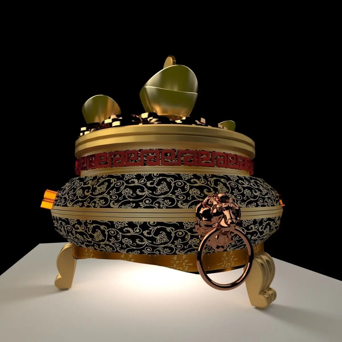 Chinese gold Ingot(Yuan Bao) pot 3D models created in 3D Max.(.max,.fbx) . All scene and texture map are included in Zip file. All scene are rendered by VRay version 3.00.07.Available files: chinese_yuanbao_treasure_bowlD.rar