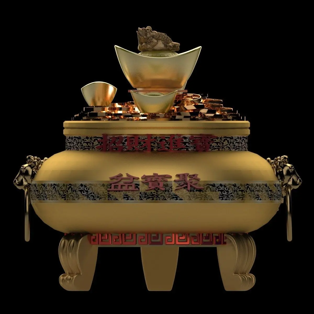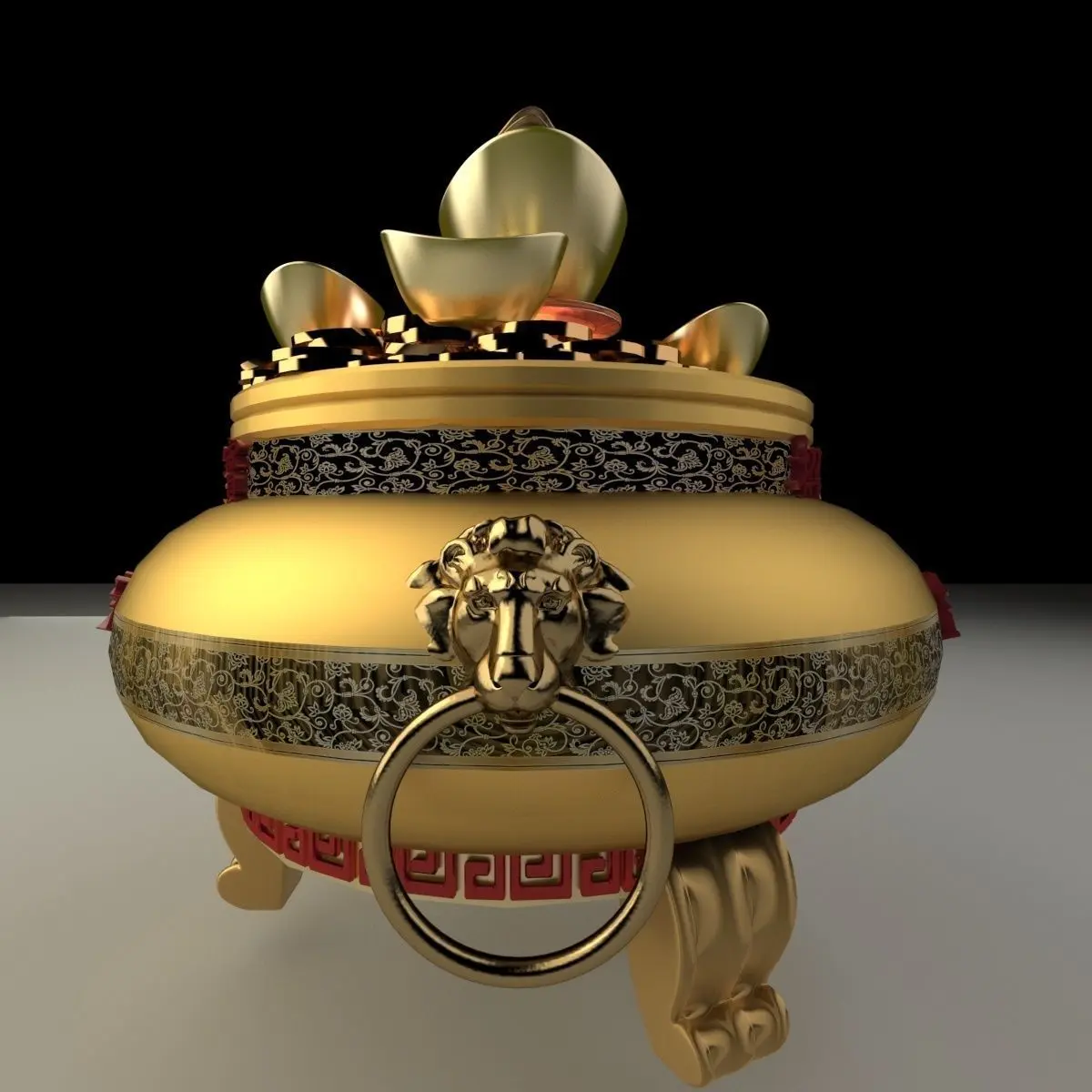 Chinese gold Ingot treasure bowel 3D models created in 3D Max.(.max,.fbx) . All scene and texture map are included in Zip file. All scene are rendered by VRay version 3.00.07.Available files: chinese_yuanbao_treasure_bowlG.rar