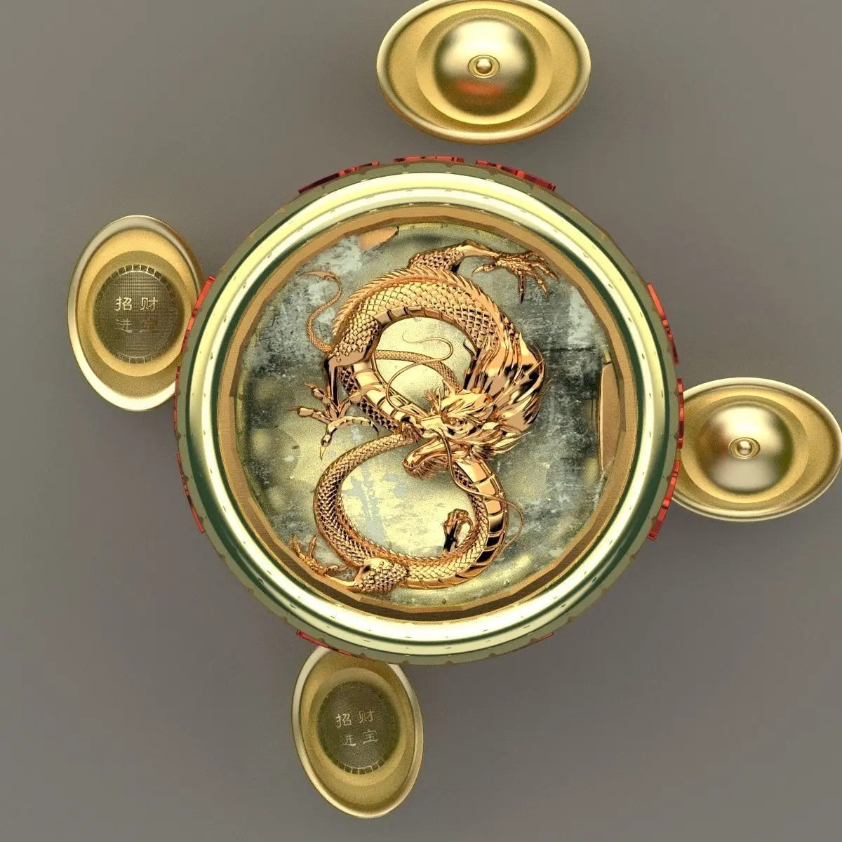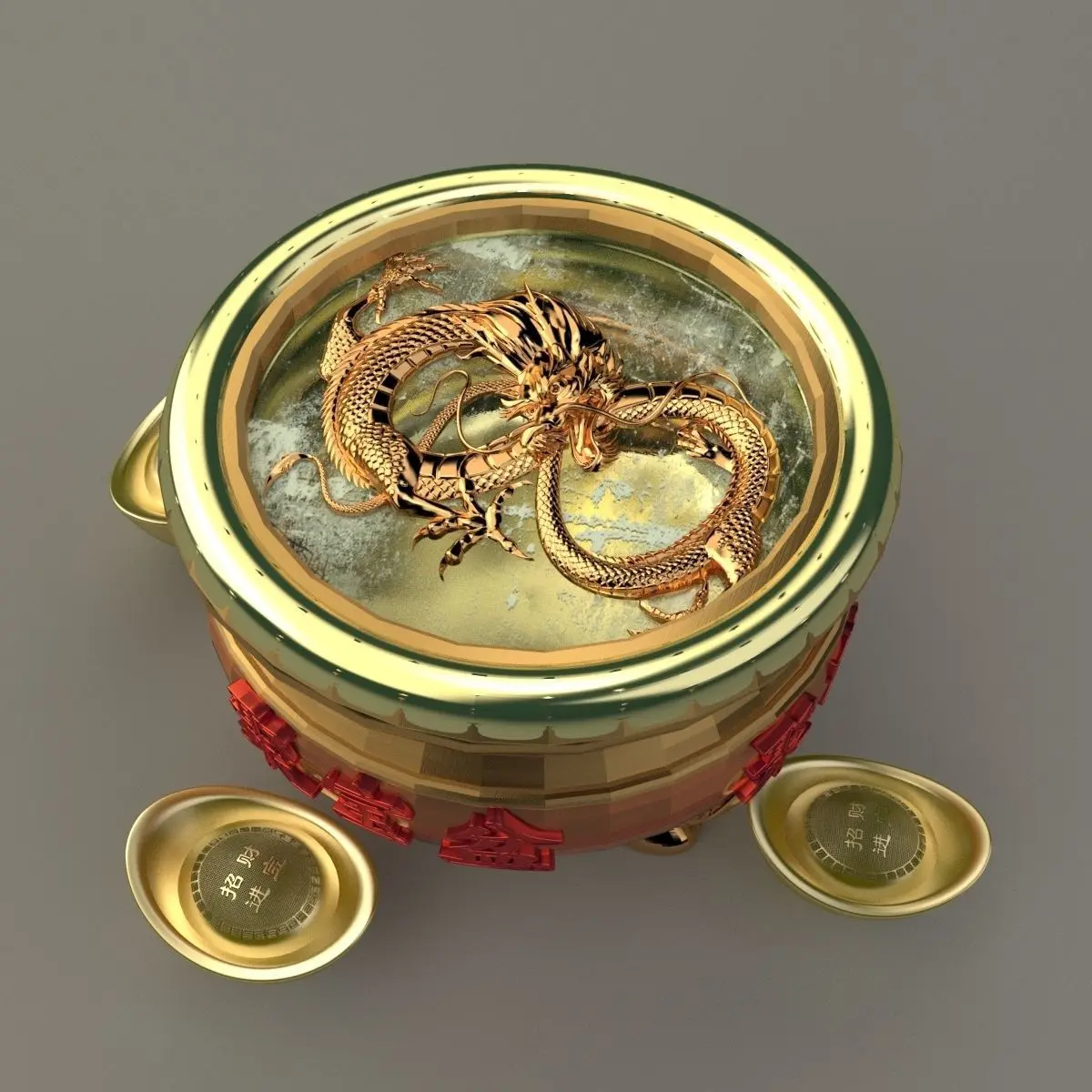 Chinese gold Ingot(Yuan Bao) pot with dragon 3D models created in 3D Max.(.max,.fbx) . All scene and texture map are included in Zip file. All scene are rendered by VRay version 3.00.07.Available files: chinese_gold_ingot_dragon_potA.rarAutodesk(.FBX)3D Max(.max)Autodesk(.FBX)Image file(.jpg)