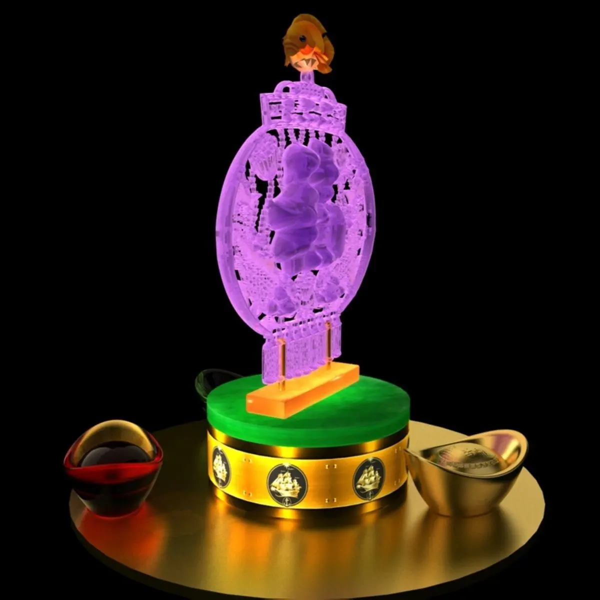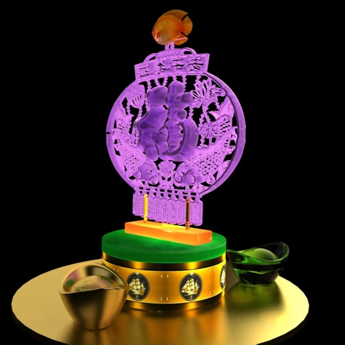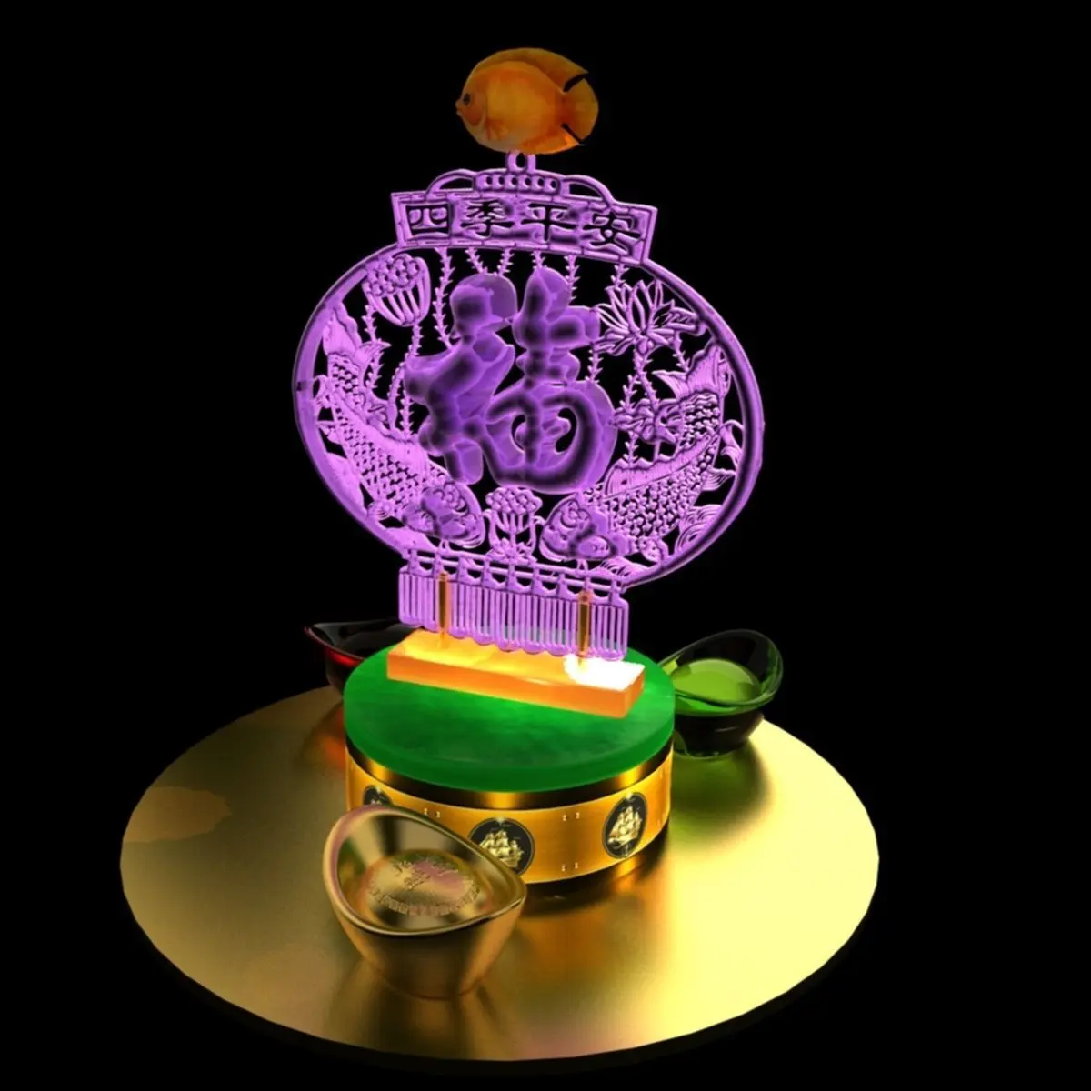 Chinese gold Ingot with fu logo 3D models created in 3D Max.(.max,.obj,.stl) . All scene and texture map are included in Zip file. All scene are rendered by VRay.chinese_gold_ingot_fish_fu_lightA.rarAvailable files: