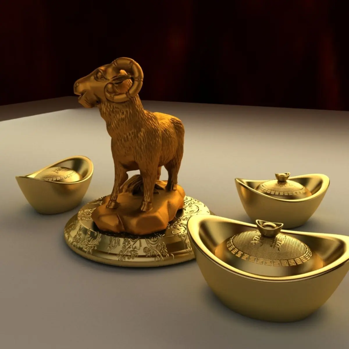 Chinese golden goat and gold Ingot(Yuan Bao) sculpture 3D models created in 3D Max.(.max,.obj,.stl) . All scene and texture map are included in Zip file. All scene are rendered by VRay.Available files: chinese_yuanbao_goat.rar