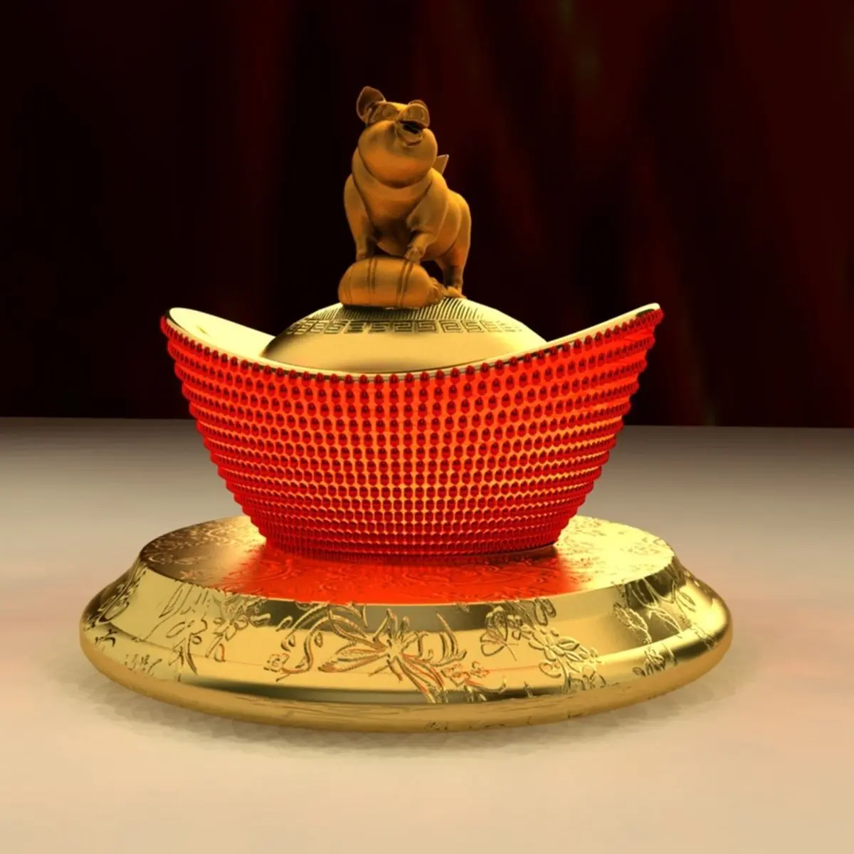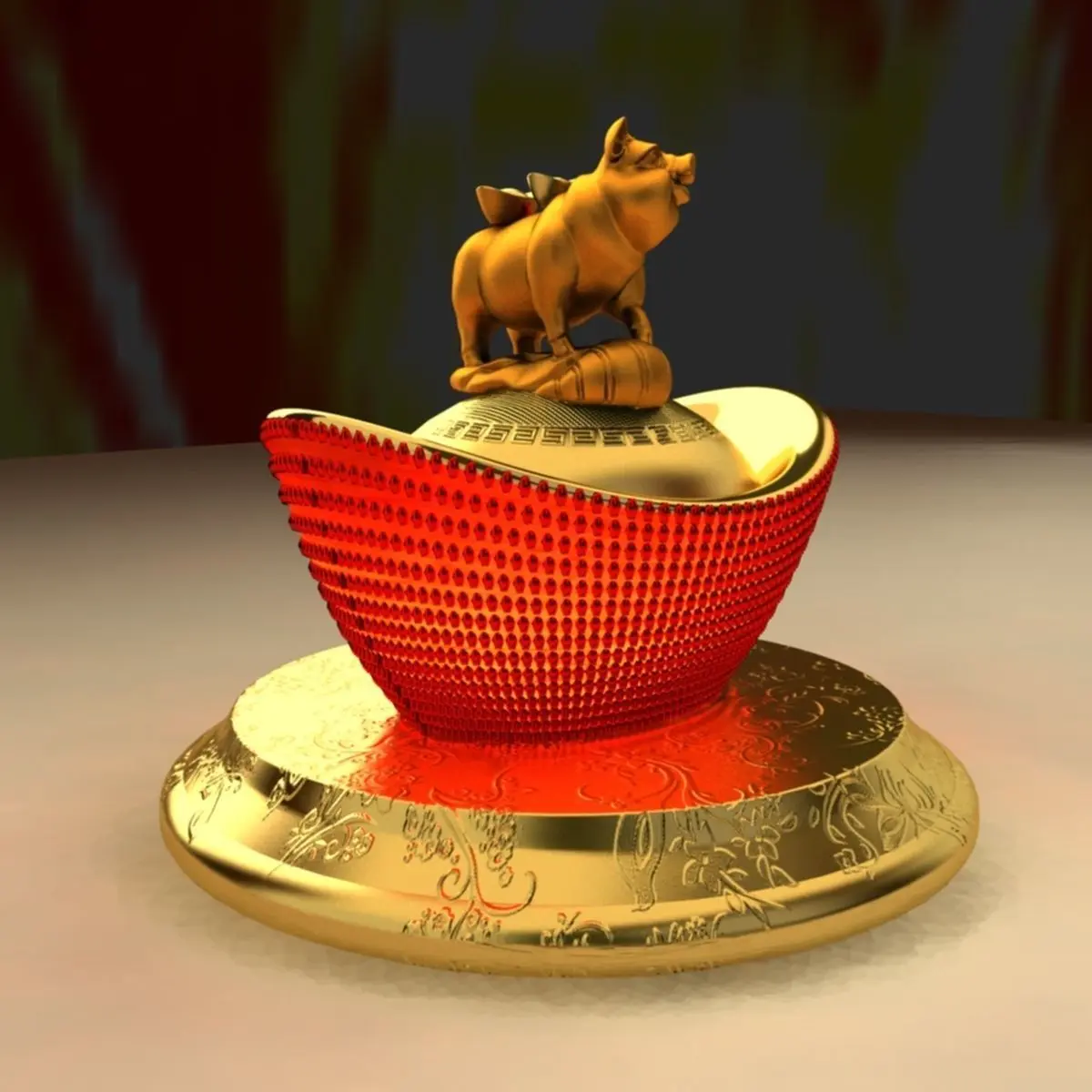 Chinese gold Ingot(Yuan Bao) led light golden pig 3D models created in 3D Max.(.max,.obj,.stl) . All scene and texture map are included in Zip file. All scene are rendered by VRay.chinese_yuanbao_golden_pigA.rarAvailable files: