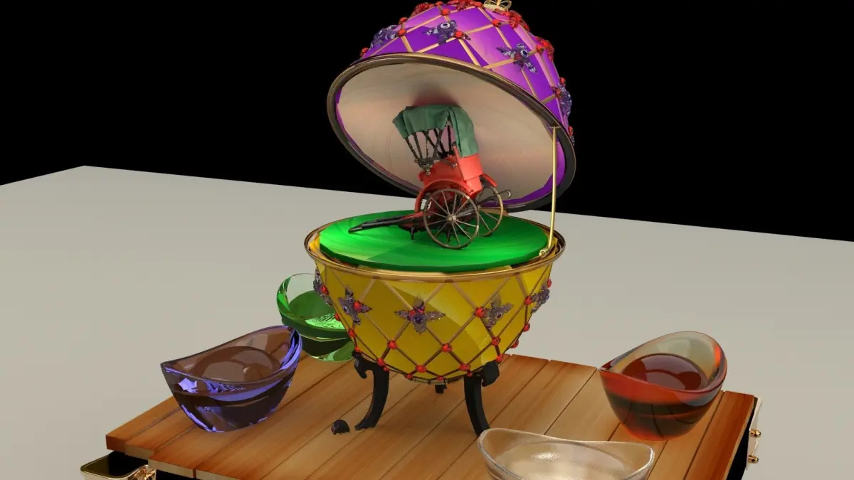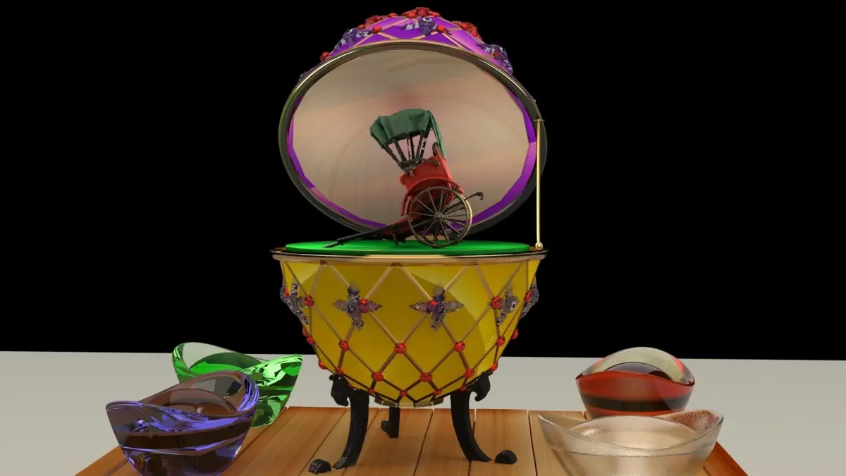Chinese gold Ingot with Russia Faberge egg and rickshaw 3D models created in 3D Max.(.max,.obj,.stl) . All scene and texture map are included in Zip file. All scene are rendered by VRay.Available files: 1052872.rar3D Max(.max)Autodesk(.FBX)wavefront(.OBJ)STereoLithography(.STL) 3D printable formatImage file(.jpg)