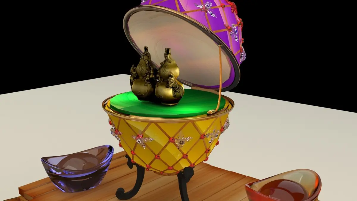Chinese gold Ingot with Russia Faberge egg and gourd 3D models created in 3D Max. All scene and texture map are included in Zip file. All scene are rendered by VRay.Available files: chinese_yuanbao_egg_guardA zip file3D MaxAutodesk(.FBX)wavefront(.OBJ)STereoLithography(.STL) 3D printable formatImage file(.jpg)