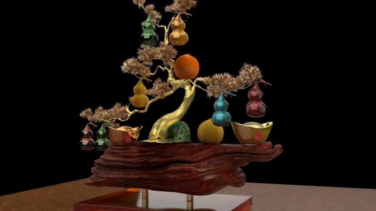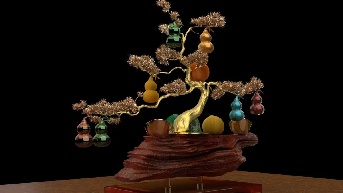 Chinese gourd tree sculpture 3D models created in 3D Max. All scene and texture map are included in Zip file. All scene are rendered by VRay.Available files: chinese_yuanbao_peach_gourd_treeB zip fileAvailable files: