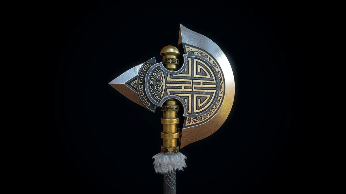 - Chinese Great Axe Textures 2K: base color map, metalness map, normal map (OpenGL), and roughness map.
