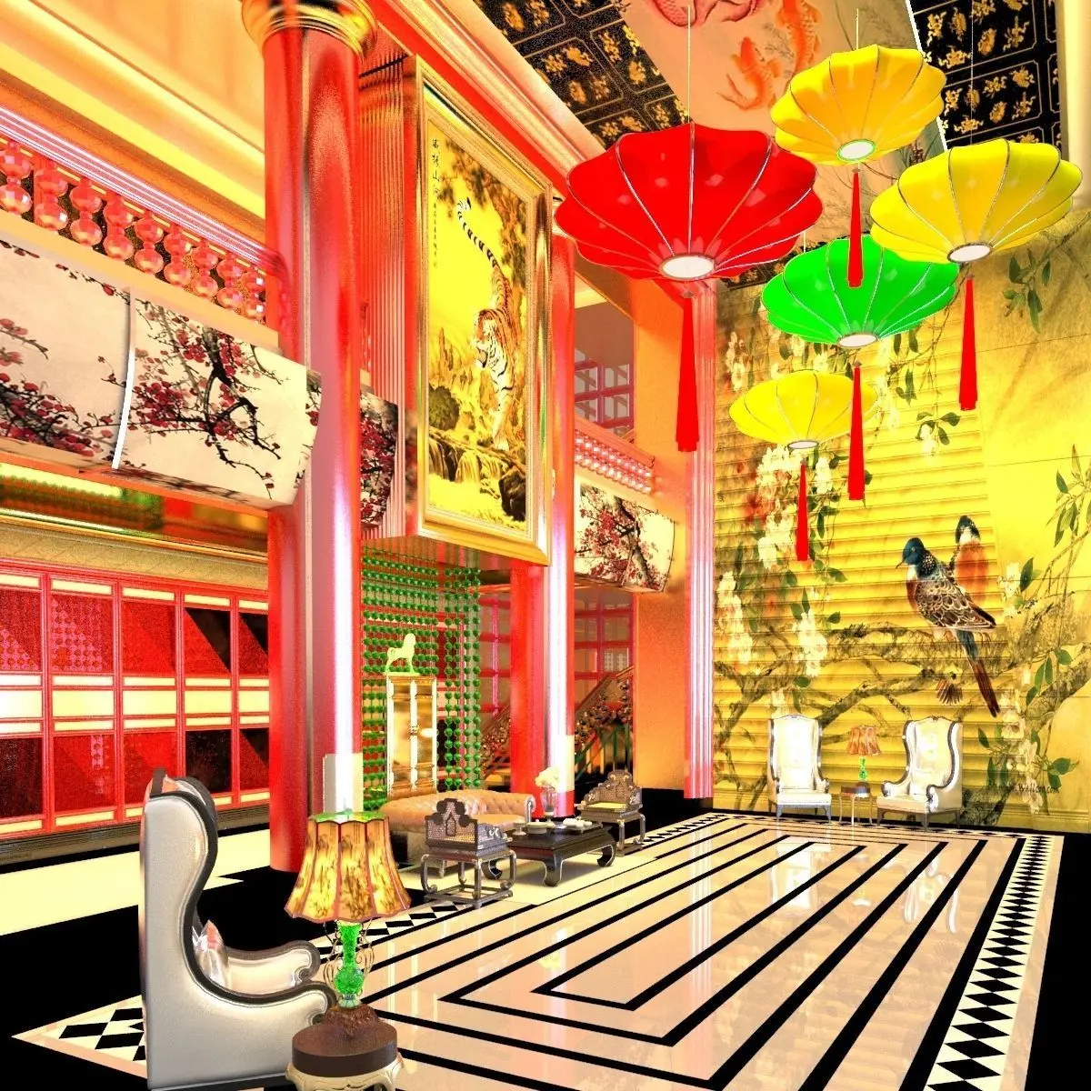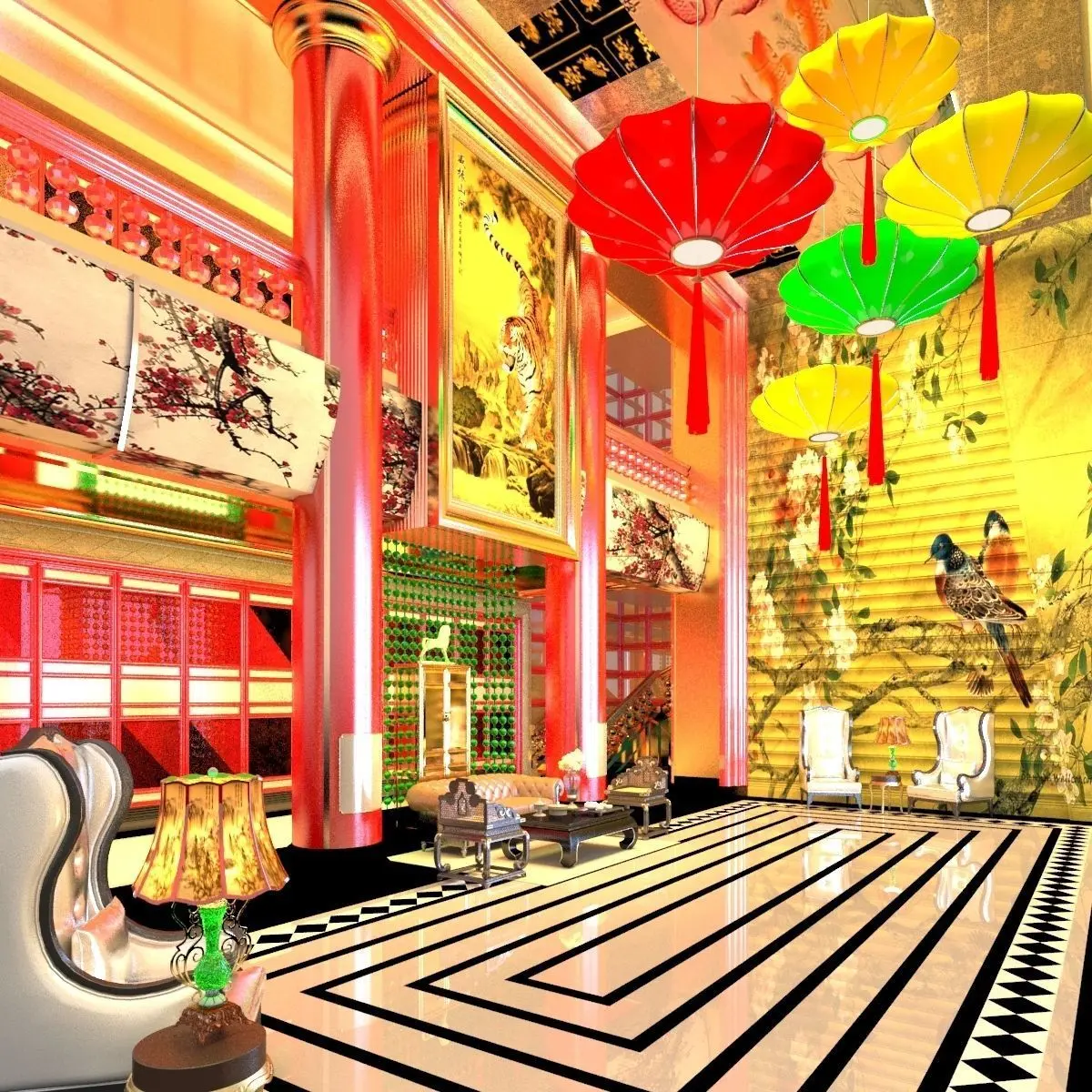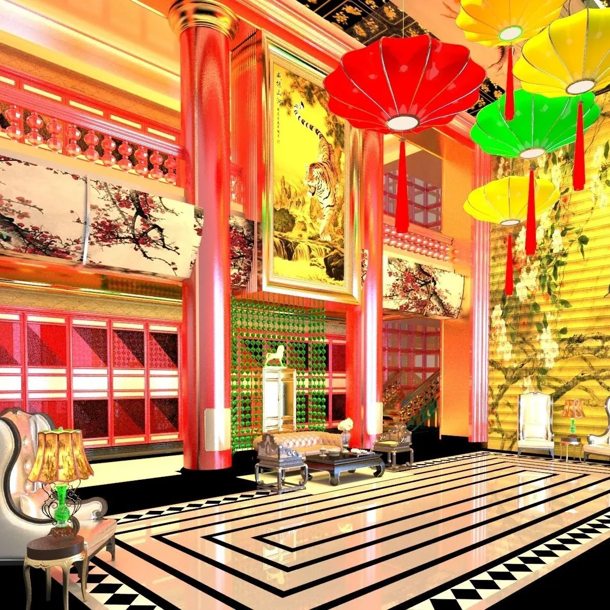 Chinese red lantern interior design lounge room restaurant 3D models created in 3D Max.(.max,.obj) . All scene and texture map are included in Zip file. Final images rendered with Vray.