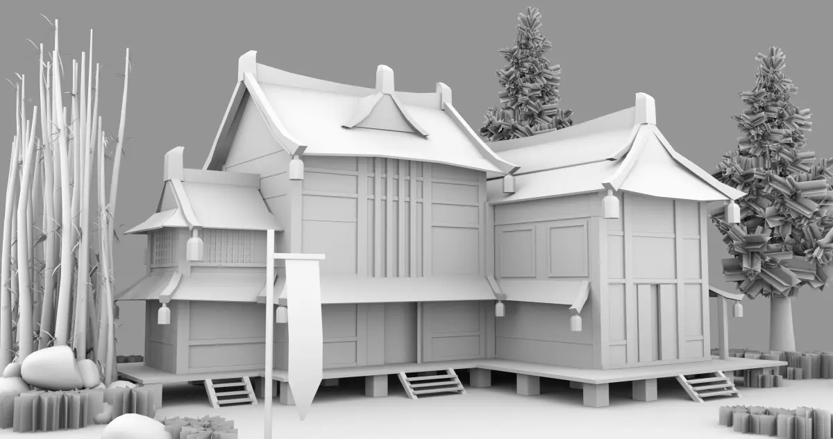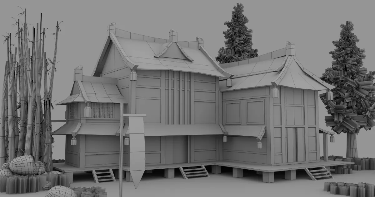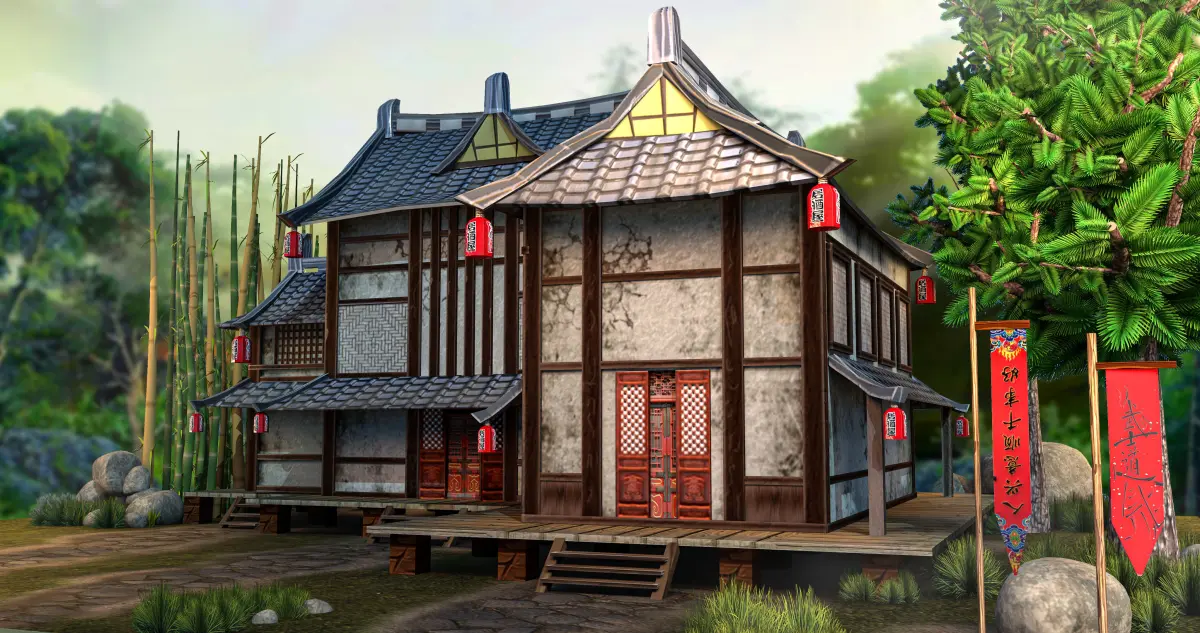 Low Poly Chinese House Model This model created in MAYA Textured in photoshop and renderd in Arnold