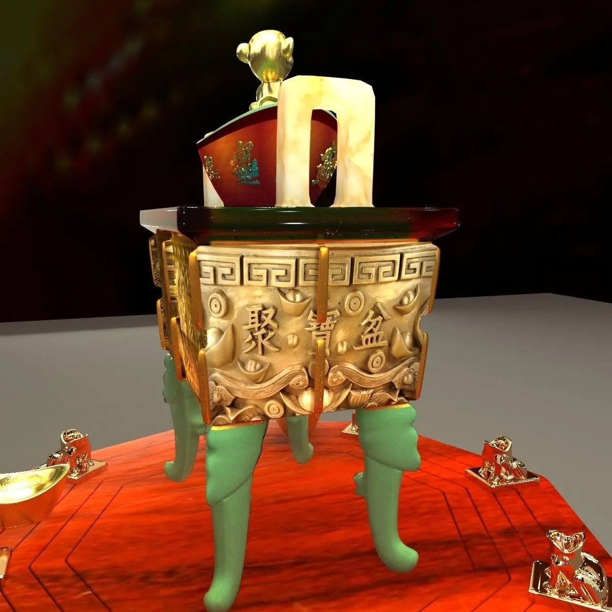 Chinese monkey gold ingot with incense bronze burner and toad 3D models created in 3D Max.(.max,.obj,.stl) . All scene and texture map are included in Zip file. All scene are rendered by VRay.Available files: chinese_toad_bronzeB.rarAvailable files: