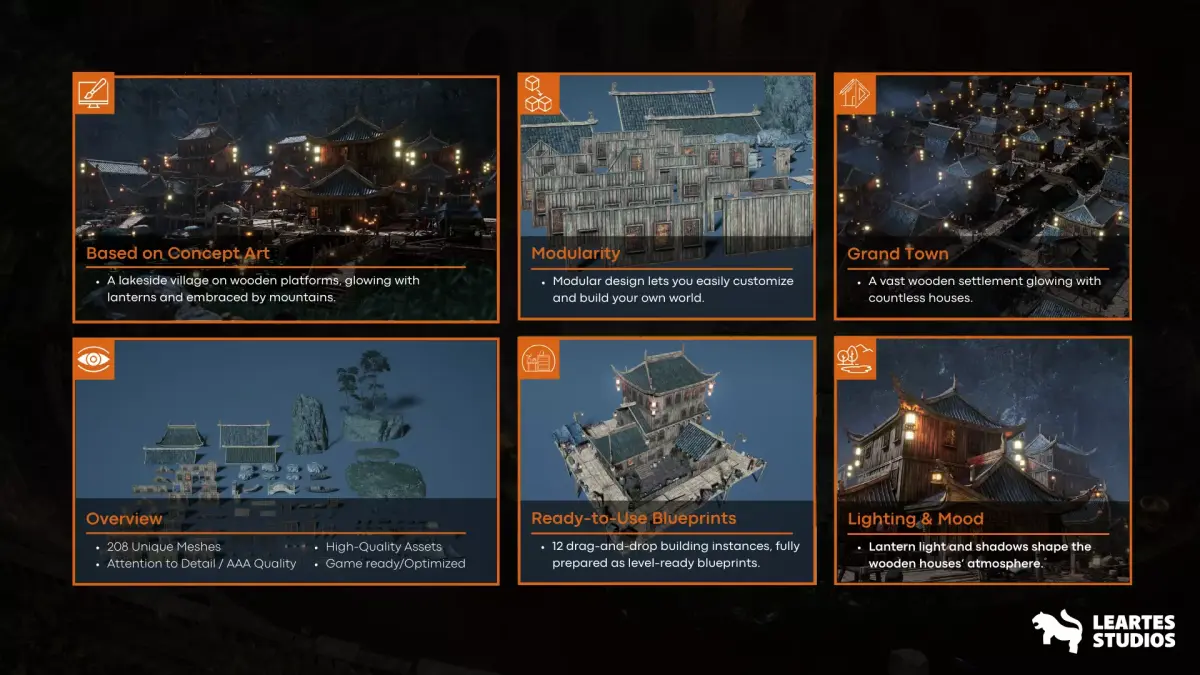 Chinese Lakeside Town Environment with 208 unique meshes. Including all showcased high-quality assets. With a good level of detail and optimized for game-ready projects.
