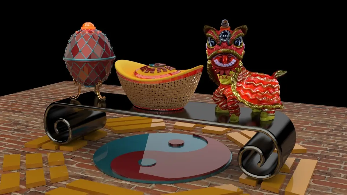 Chinese lion dance and gold Ingot sculpture 3D models created in 3D Max.All scene and texture map are included in Zip file. All scene are rendered by VRay.Available files: chinese_lion_dance_yuanbao_eggA zip fileAvailable files: