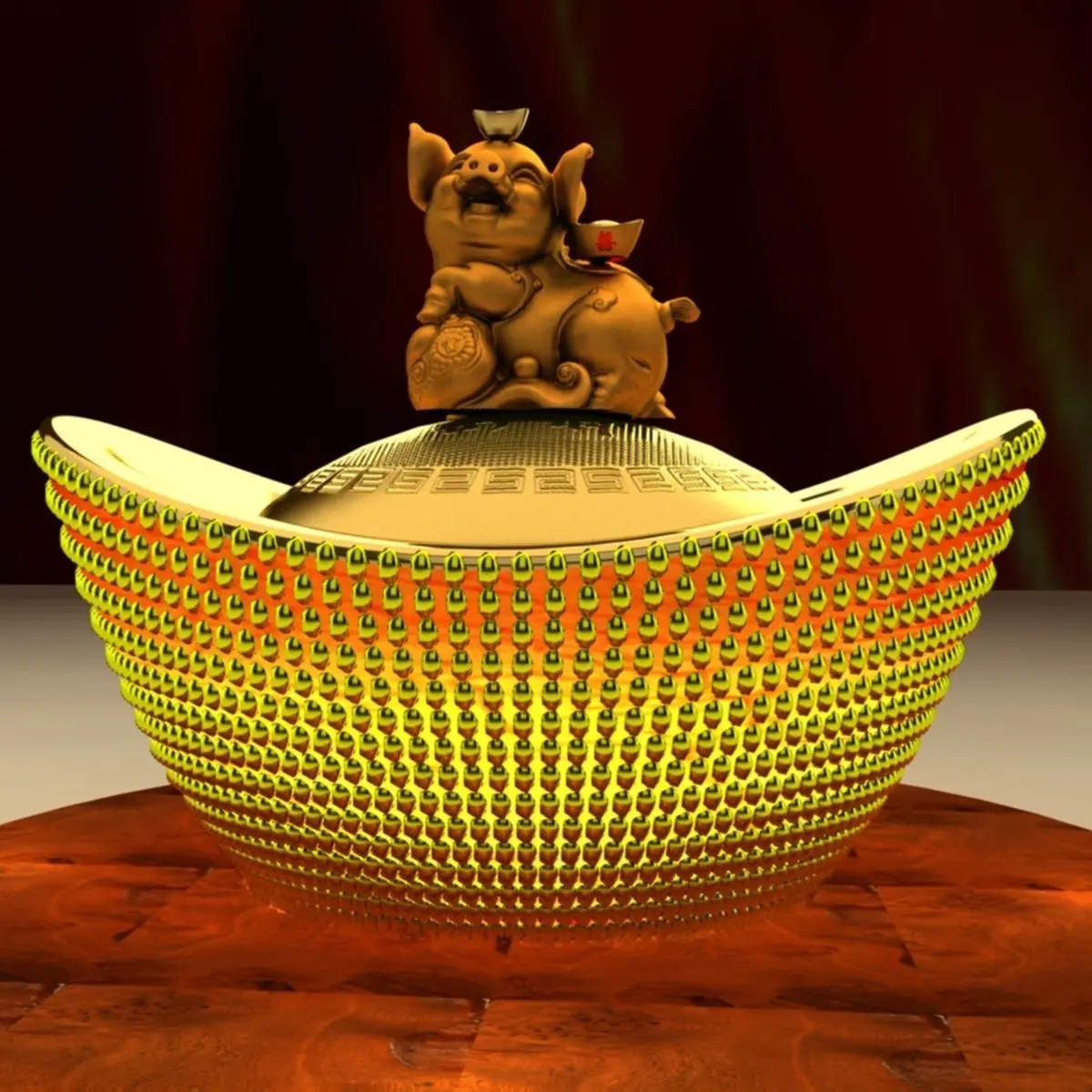 Chinese gold Ingot(Yuan Bao) led light lucky pig 3D models created in 3D Max.(.max,.obj,.stl) . All scene and texture map are included in Zip file. All scene are rendered by VRay.chinese_yuanbao_lucky_pigA.rarAvailable files: