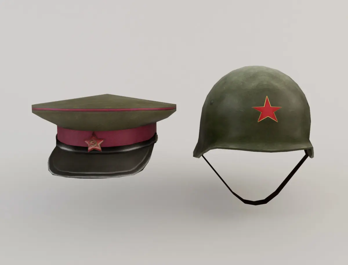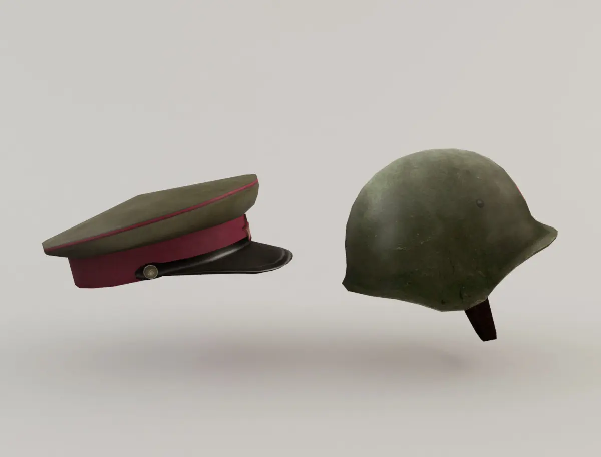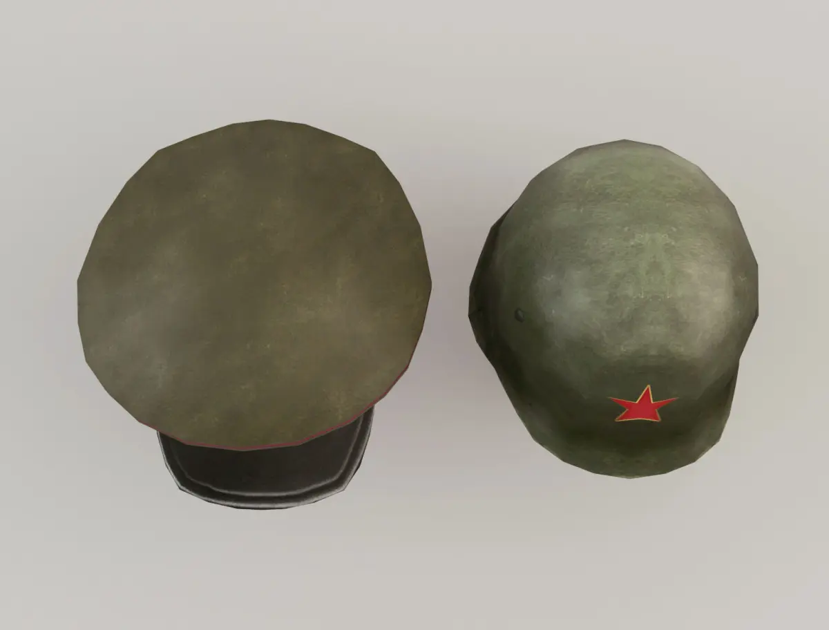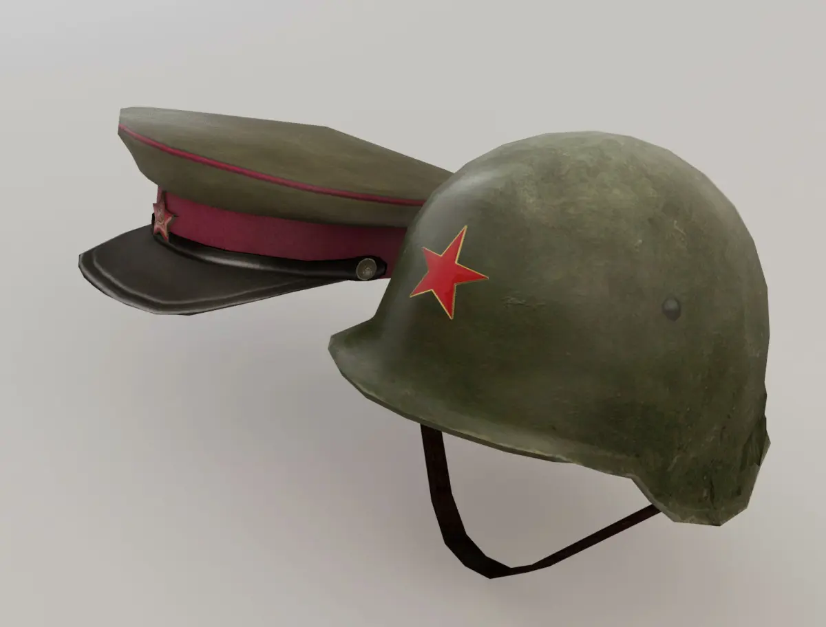 Chinese military hat and helmet. The models are low poly to be used for games or applications and 3D scenes that require few polygons. It has been created in different 3D Studio Max versions and also in FBX and OBJ.